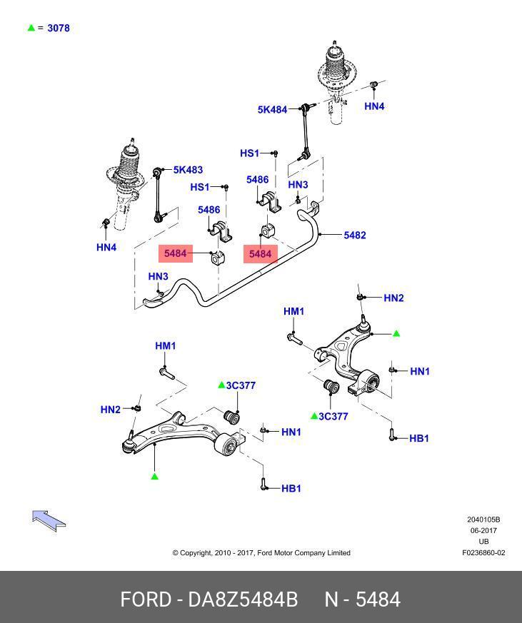 DA8Z 5484-B FORD Втулка стабилизатора FORD Explorer переднего правая OE