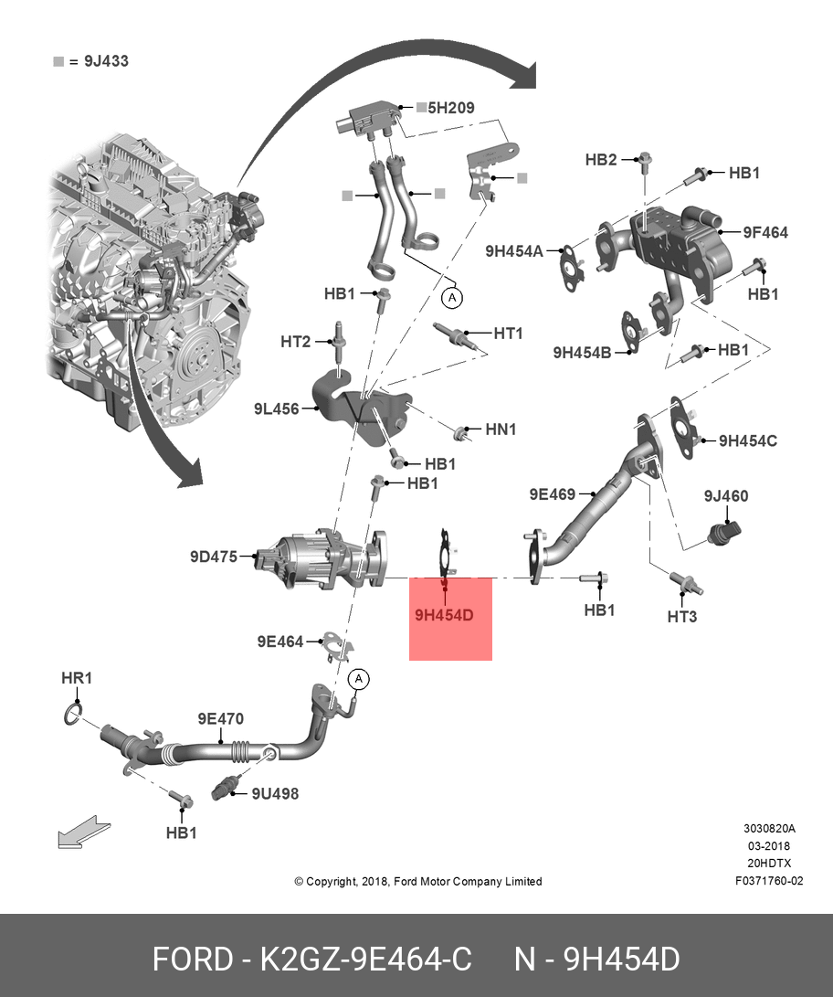 K2GZ-9E464-C FORD Прокладка клапана EGR K2GZ9E464C
