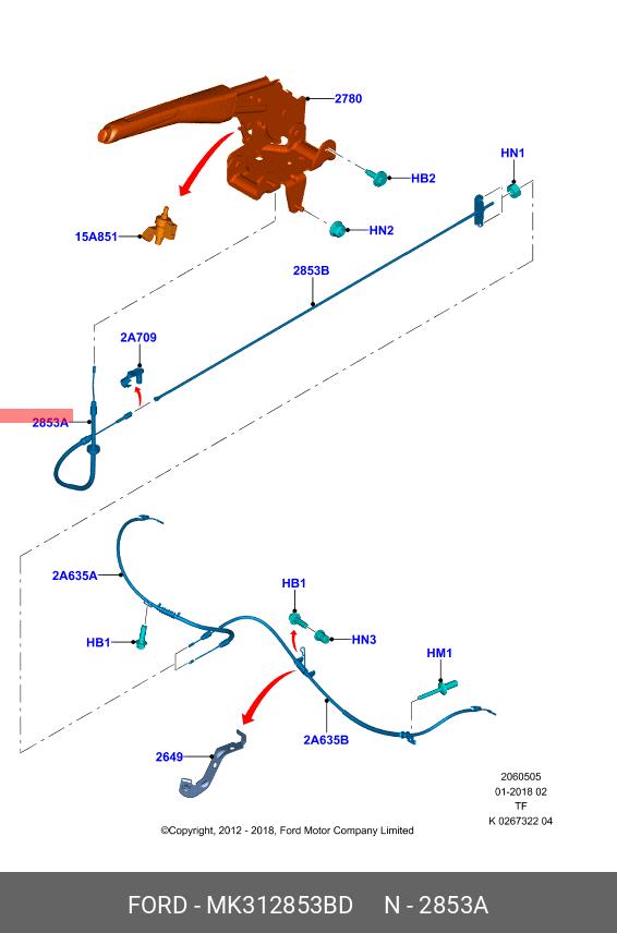 MK31-2853-BD FORD MK312853BD Трос стояночного тормоза (MK31-2853-BD) (MK31-2853-BD)