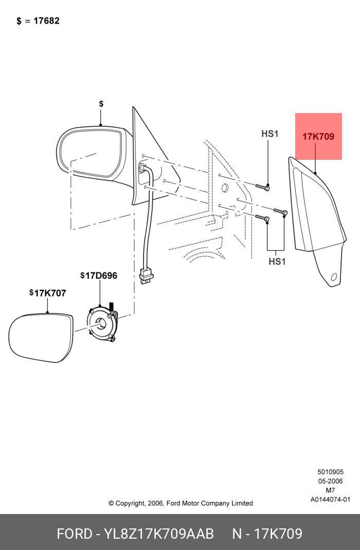 YL8Z17K709AAB FORD Крышка FORD Maverick (01-07) корпуса зеркала правого OE
