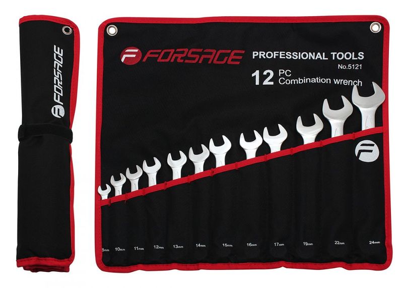 F5121 FORSAGE TOOLS Набор ключей комбинир 12пр 8-24мм (свертка) /FORSAGE/