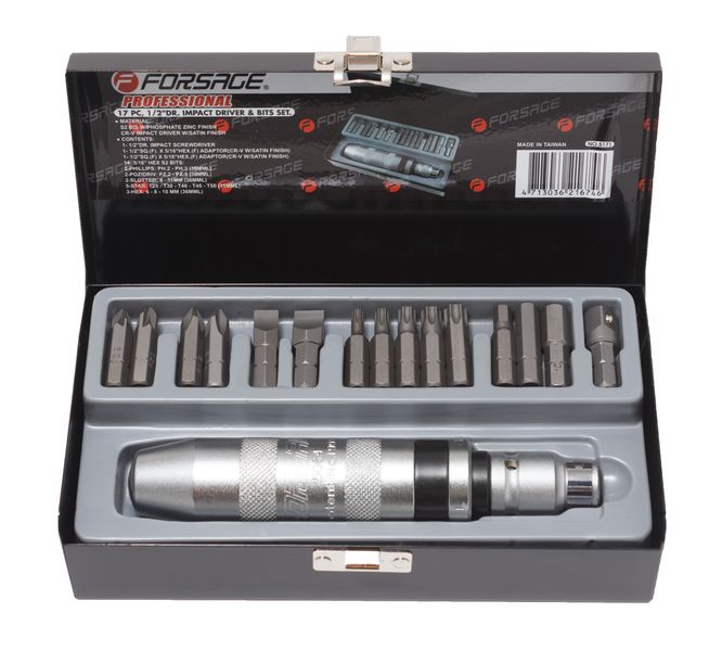F5171 FORSAGE TOOLS Отвертка ударная с набором бит 17 предметов /FORSAGE/