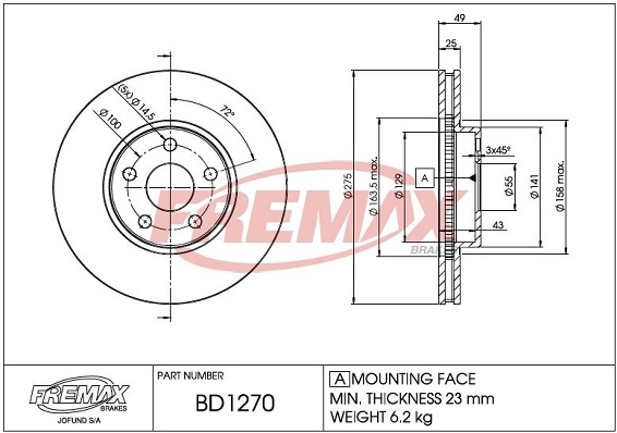 BD1270 FREMAX диск тормозной передний!\ Toyota Celica 1.8 16V 99>