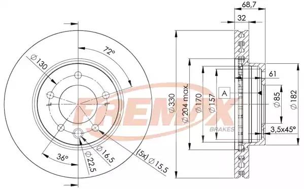 BD3326 FREMAX диск тормозной передний левый!\ Porsche Cayenne 3.2-5.0TDi 02>