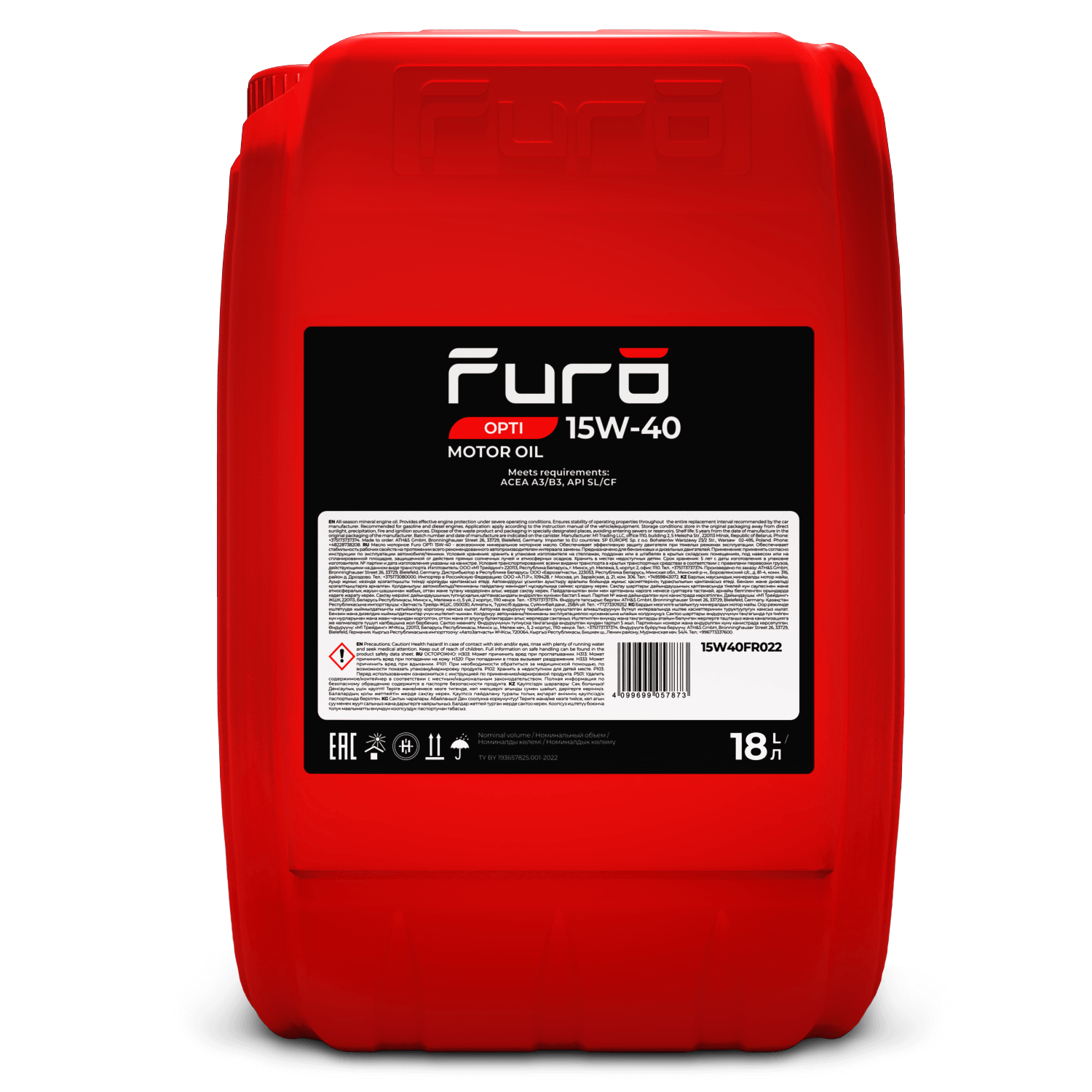| Наименование | Furo OPTI 15W40 (18L) масло моторное! минер.\ ACEA A3/B3, API SL/CF |