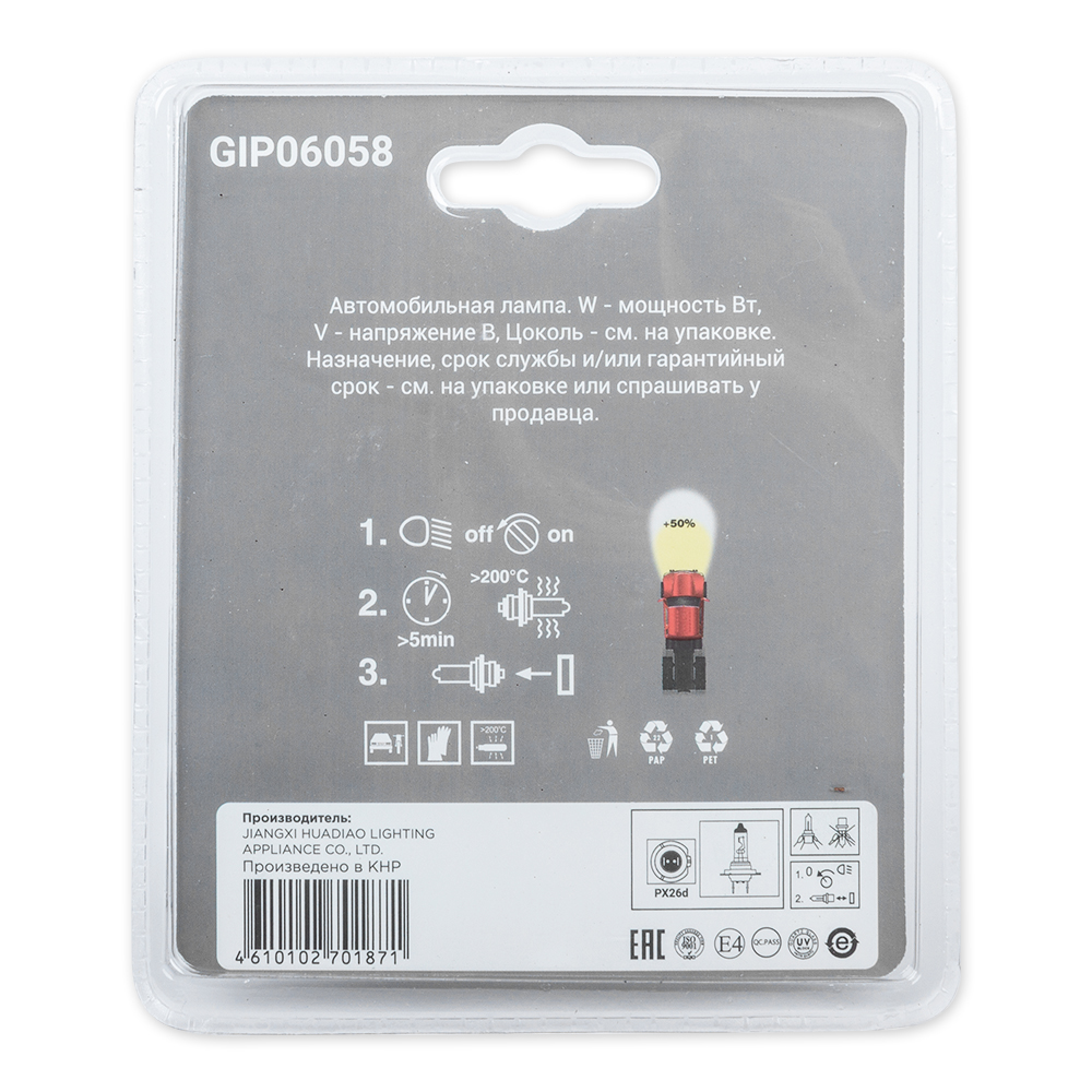 GIP06058 GANZ Лампа 24V H7 70W PX26d +50% блистер (2шт.) GANZ