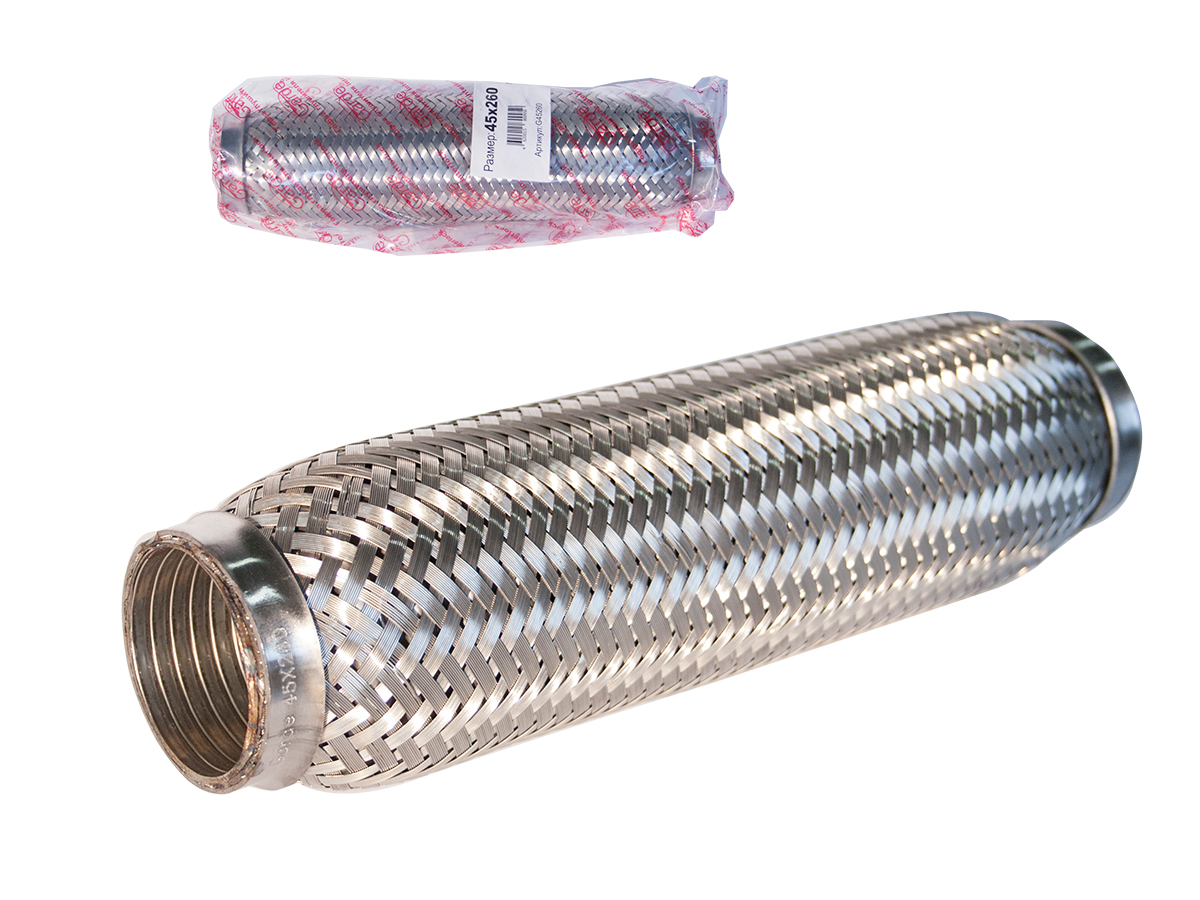 | Наименование | Гофра глушителя 45x260 в 3-ой оплетке interlock нержавеющая сталь GARDE |