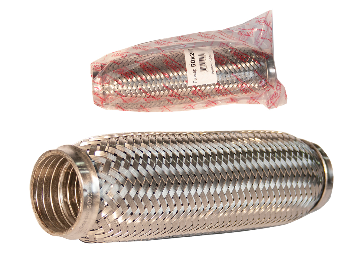 | Наименование | Гофра глушителя 50x230 в 3-ой оплетке interlock нержавеющая сталь GARDE |