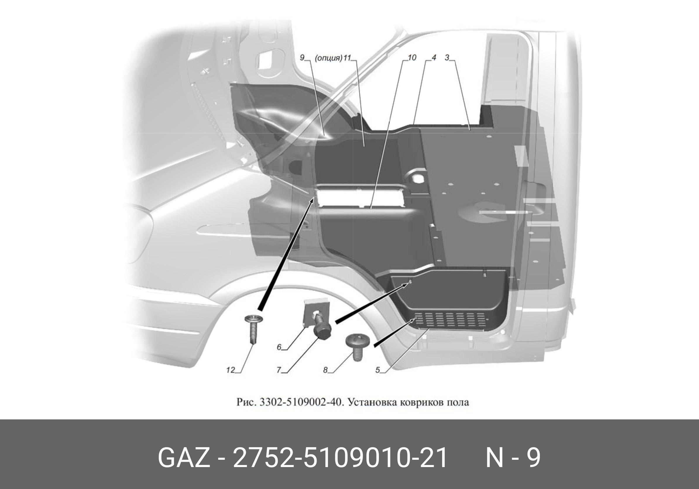 2752510901021 GAZ GAZ Коврик салона ГАЗ-3302,2217,2705,3221 резина правый черный (ОАО ГАЗ)