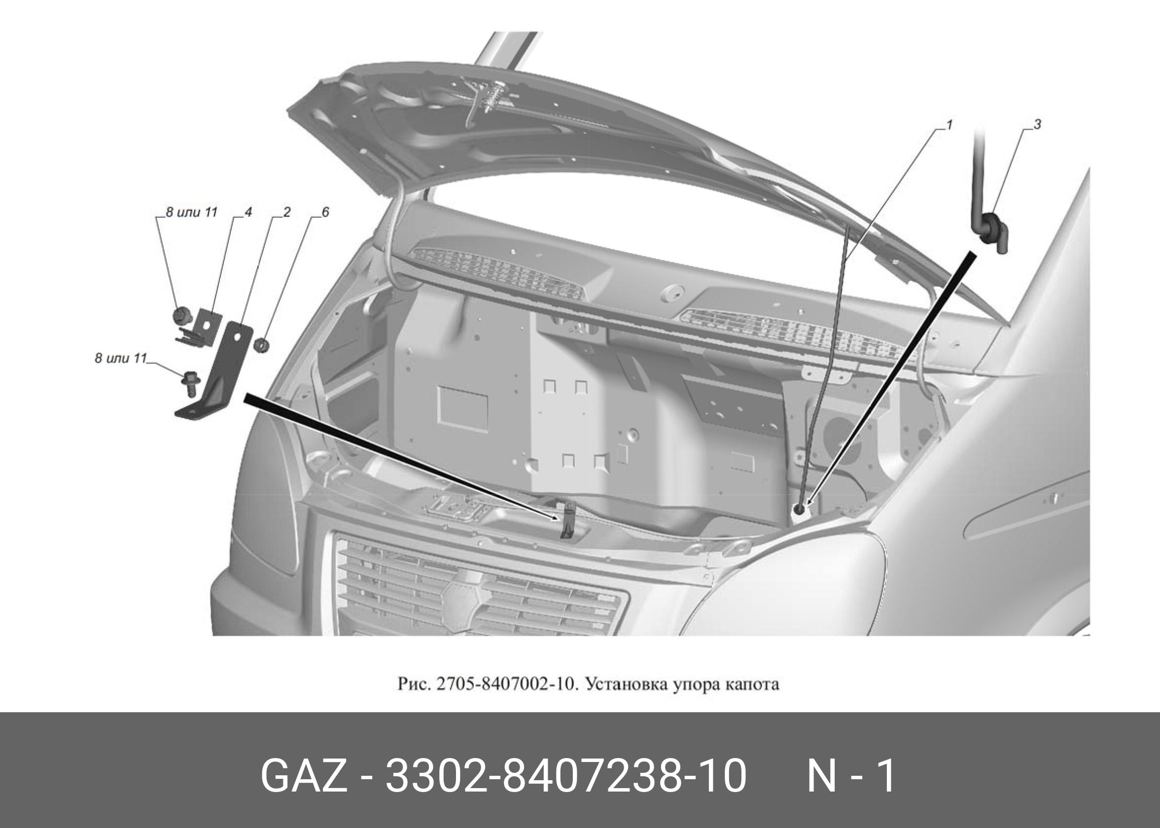 3302840723810 GAZ GAZ Стойка упора капота ГАЗель 3302 н/о