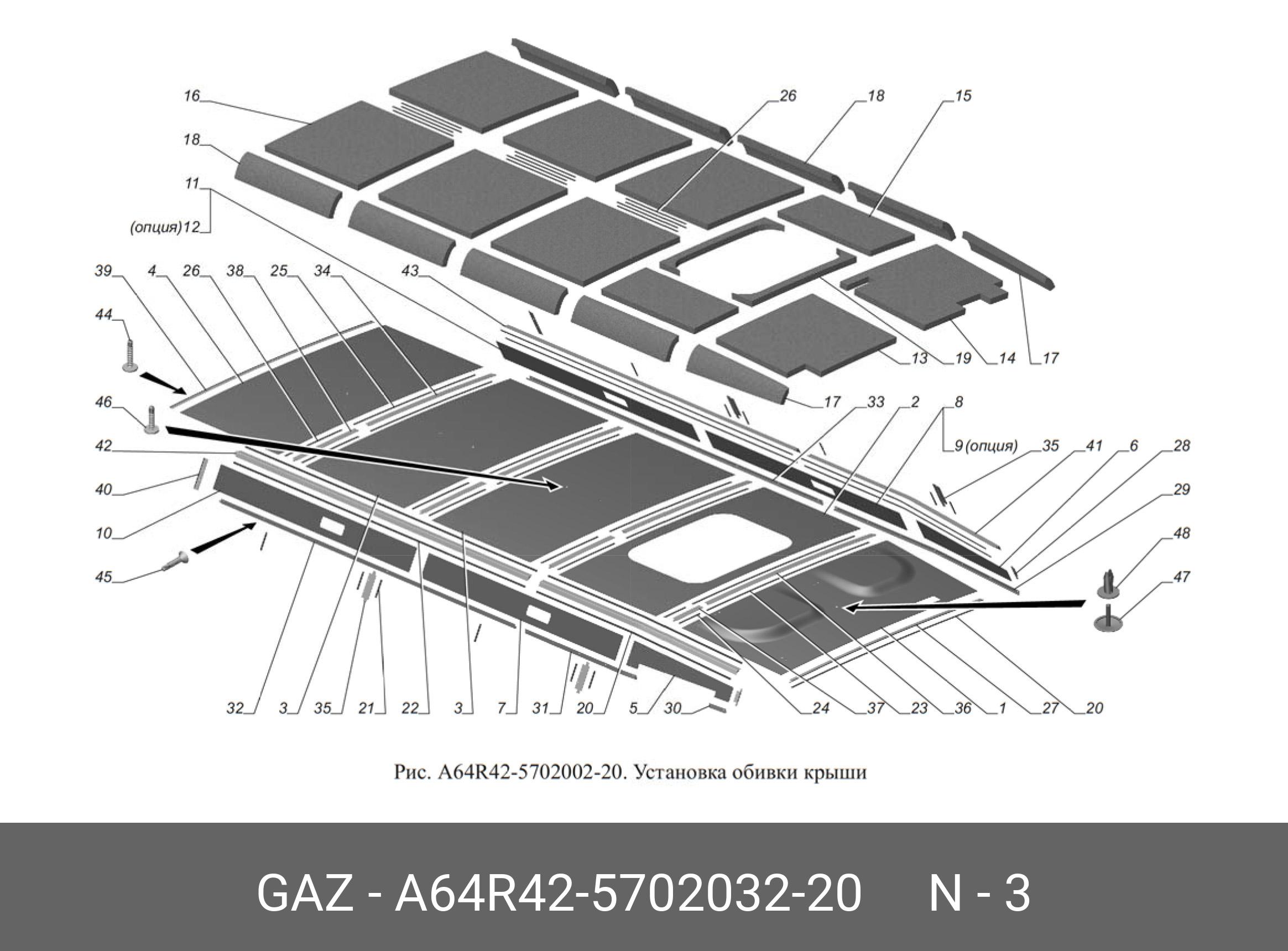 А64R42-5702032-20 GAZ GAZ Обивка крыши ГАЗель NEXT-6442 (автобус) №3