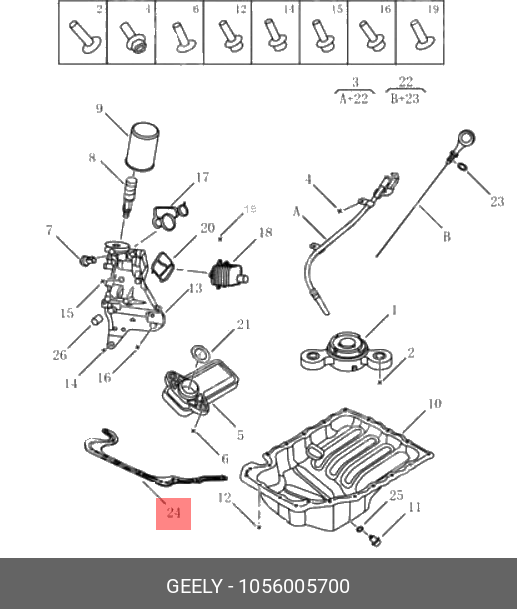 1056005700 GEELY 1056005700 Прокладка масляного поддона NL-3 1.8T (металл.)