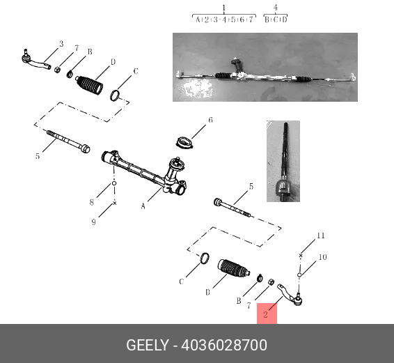 4036028700 GEELY Наконечник GEELY Atlas Pro левый OE