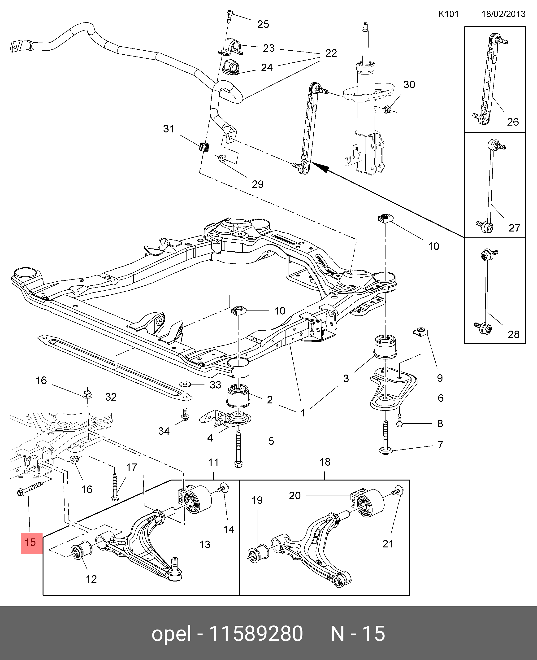 11589280 GENERAL MOTORS Болт CHEVROLET Cruze (10-) рычага переднего OE