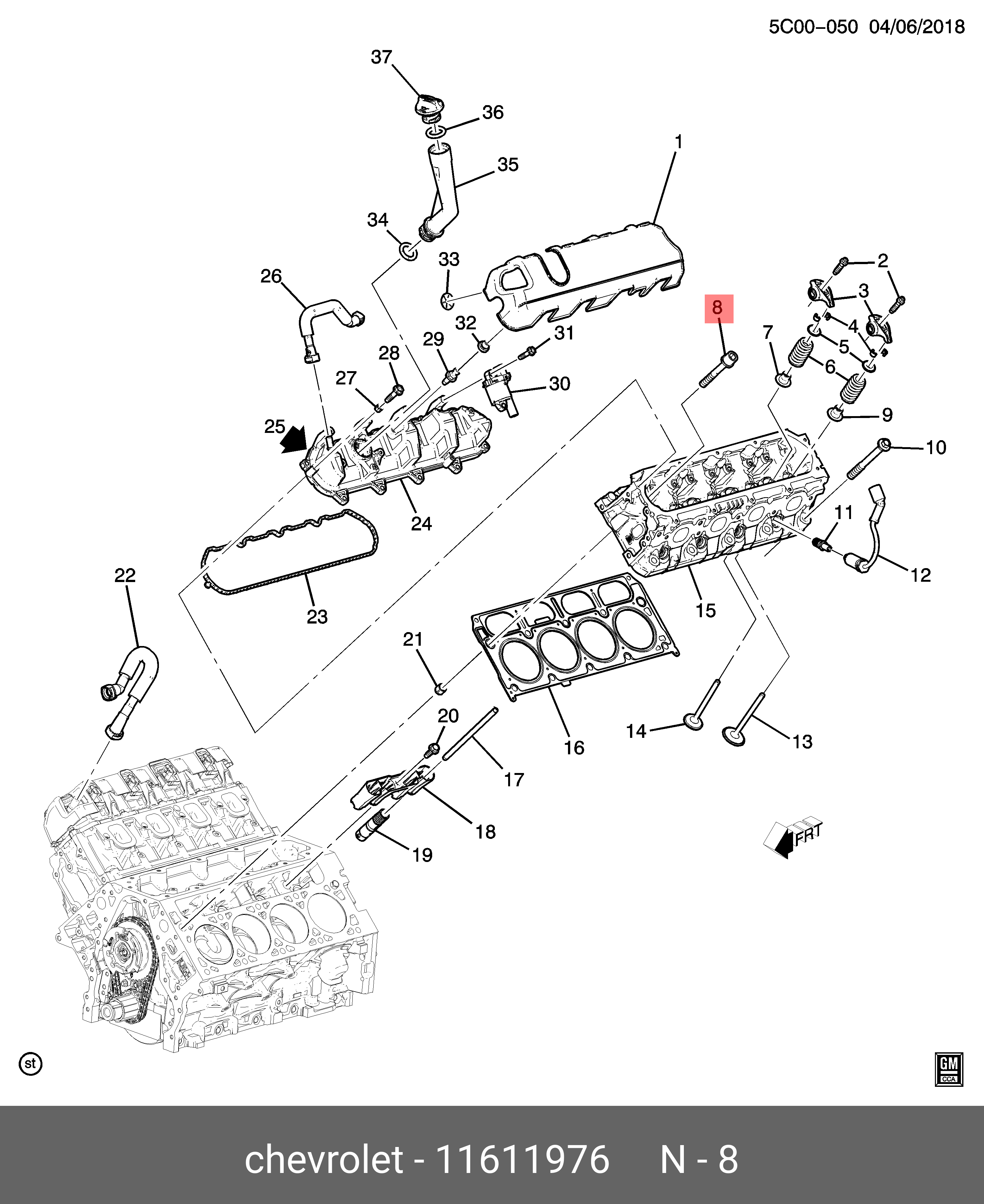 11611976 GENERAL MOTORS Болт CHEVROLET Camaro головки блока OE