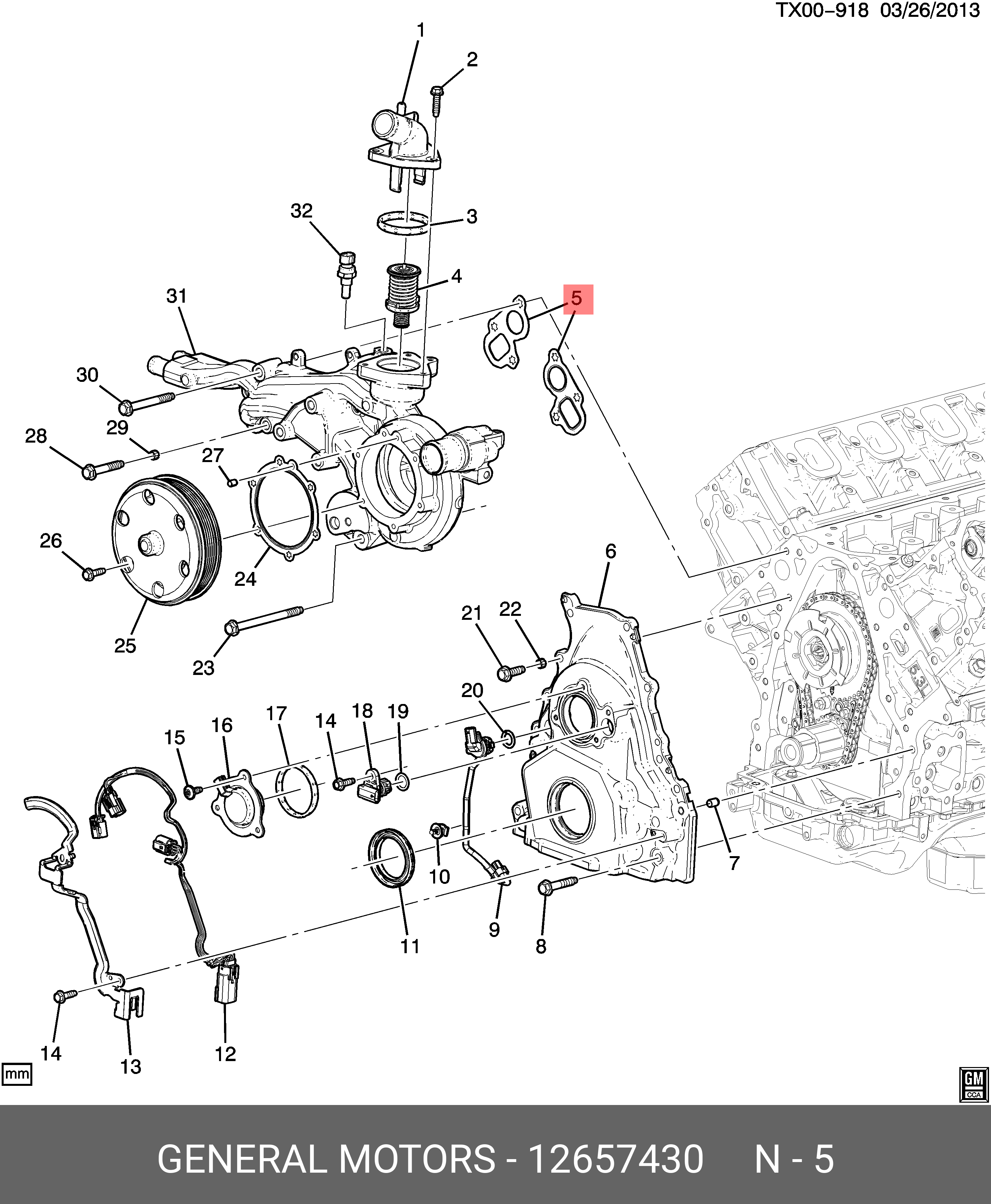 12657430 GENERAL MOTORS Прокладка CHEVROLET Tahoe CADILLAC Escalade насоса водяного OE