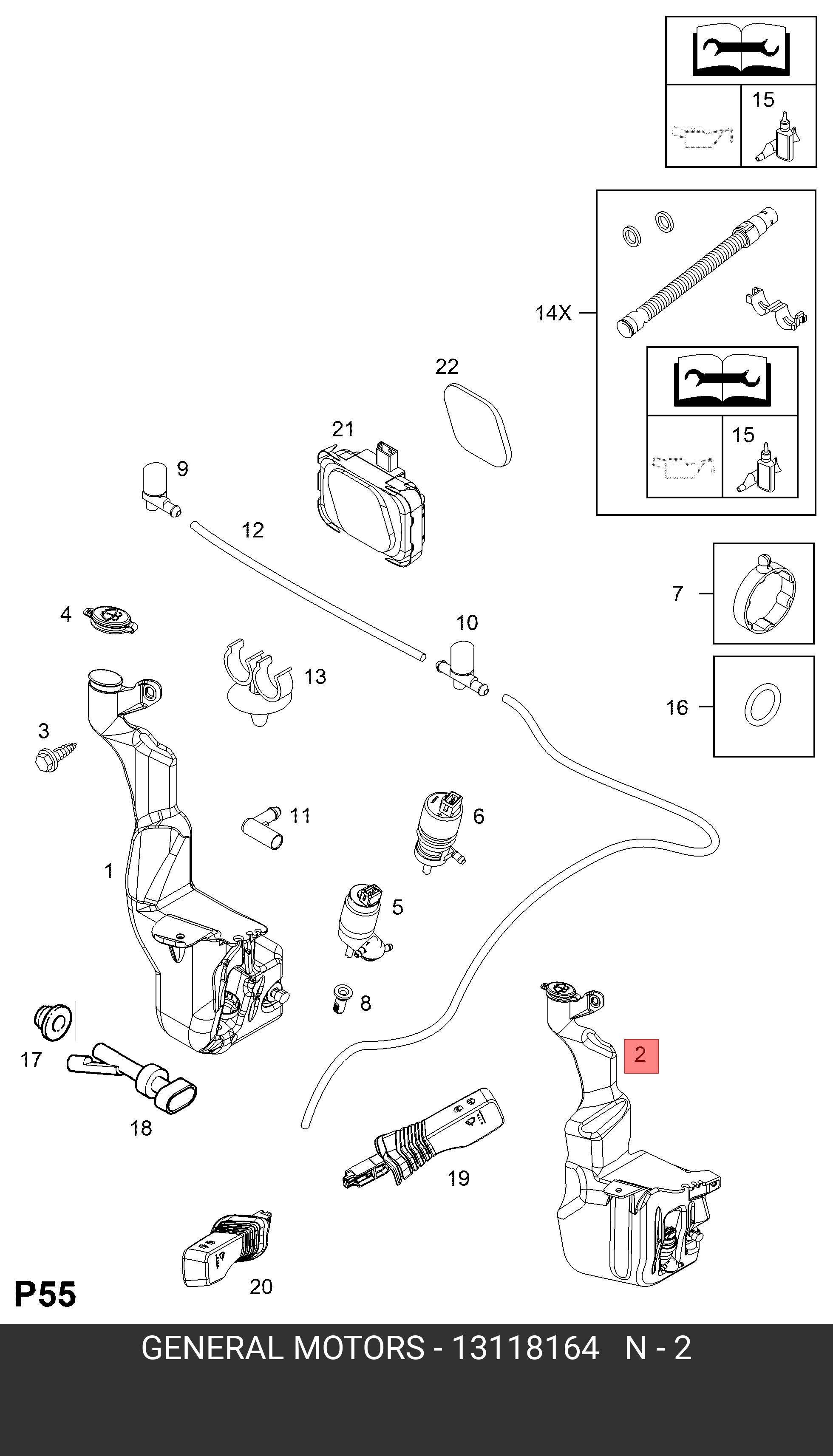 | Наименование | Бачок омывателя OPEL Astra H (04-) стекла ветрового OE |
