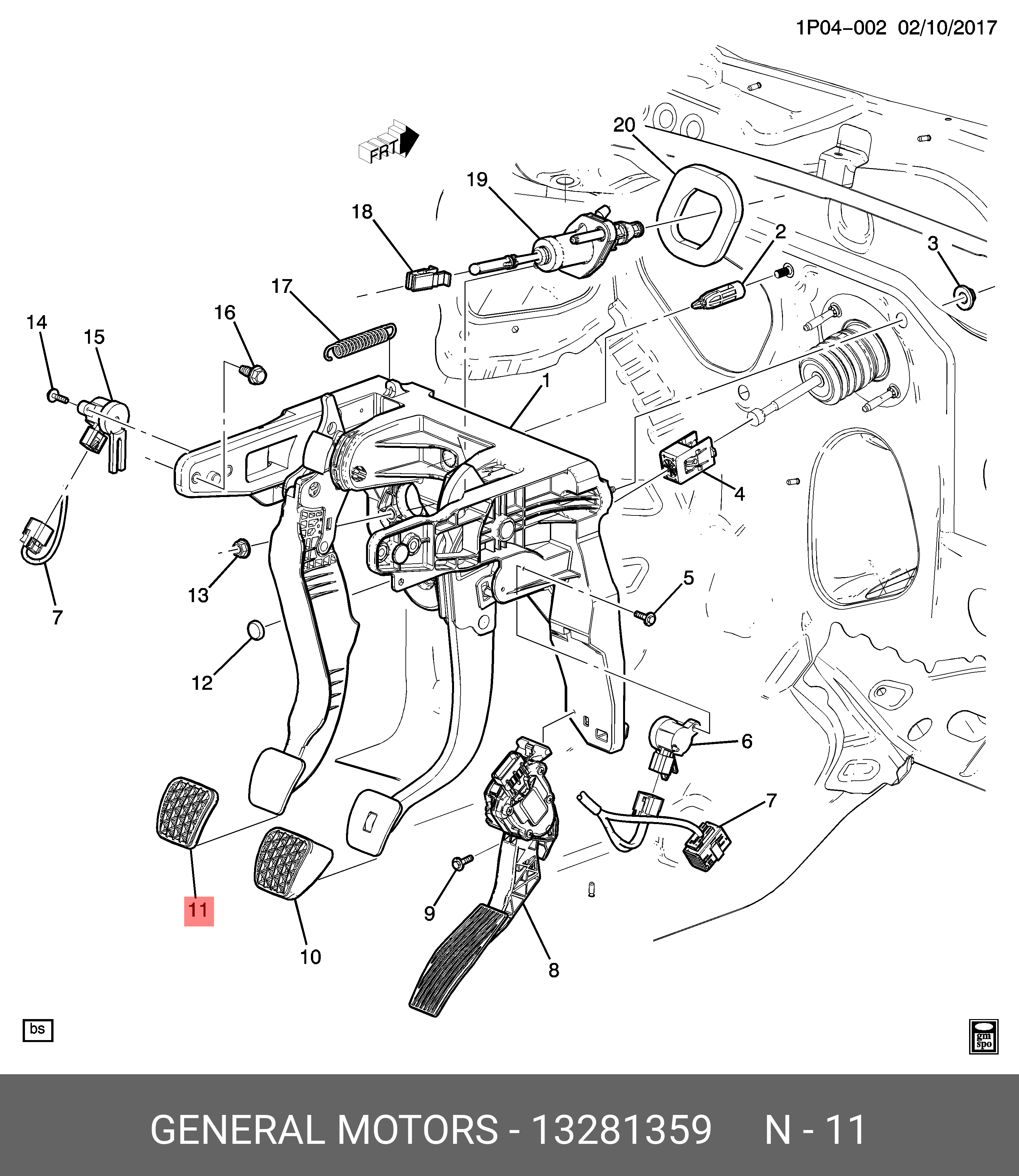 13281359 GENERAL MOTORS Накладка педали CHEVROLET Cruze сцепления OE