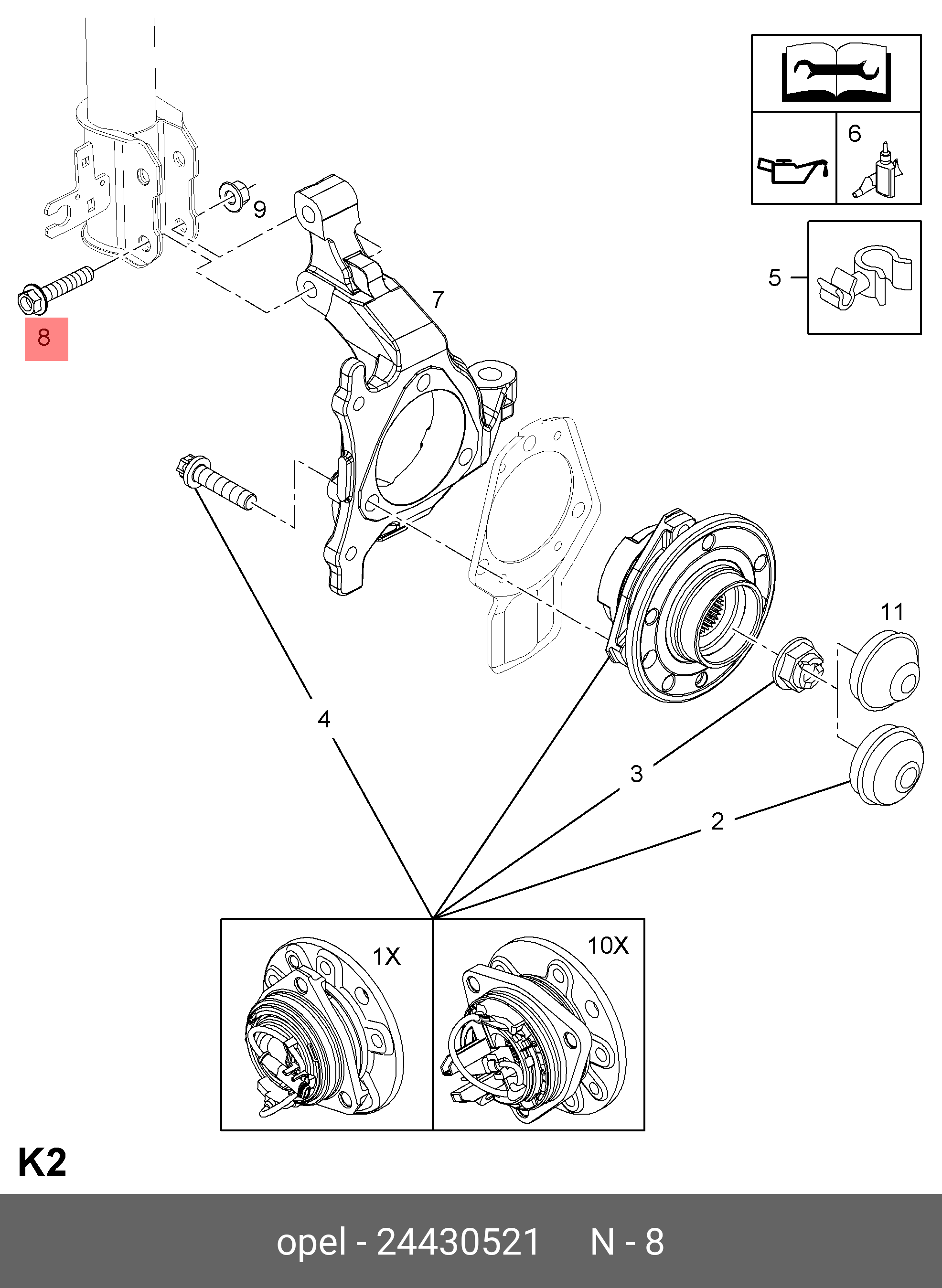 24430521 GENERAL MOTORS Болт OPEL OE