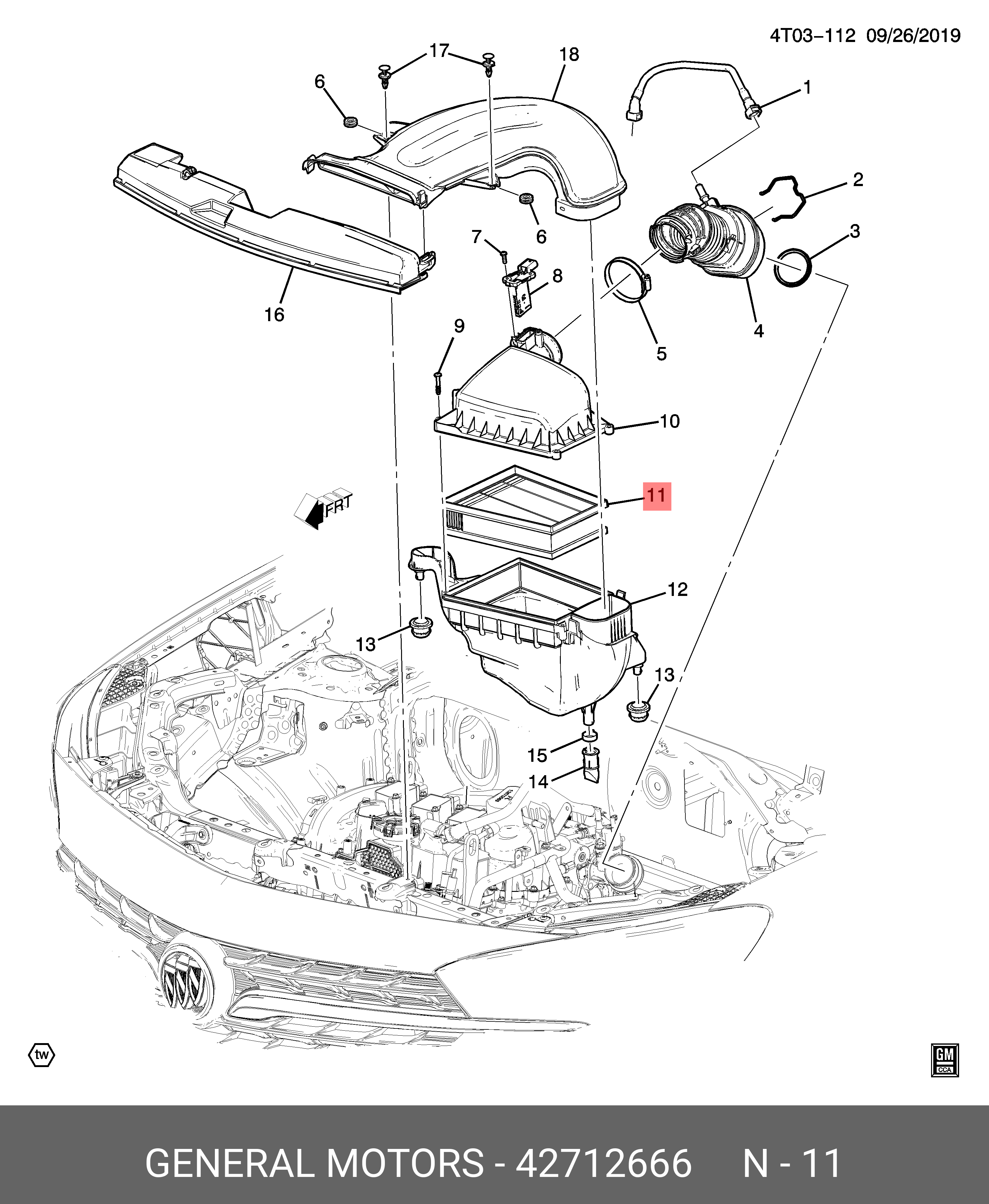 42712666 GENERAL MOTORS ФИЛЬТРУЮЩИЙ ЭЛЕМЕНТ ВОЗДУШНОГО ФИЛЬТРА ДВИГАТЕЛЯ 42712666