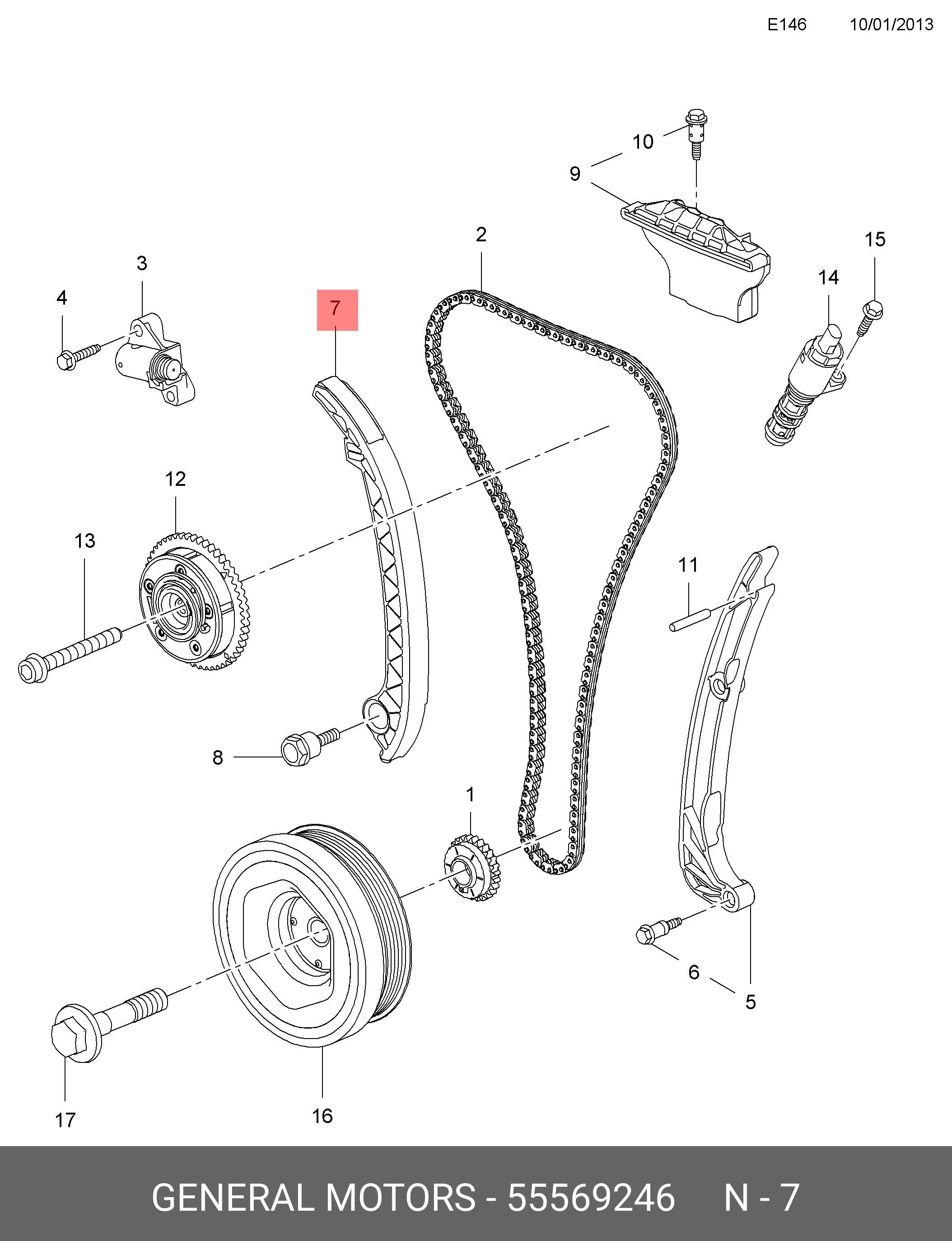 55569246 GENERAL MOTORS Направляющая OPEL Astra J (10-) цепи ГРМ OE