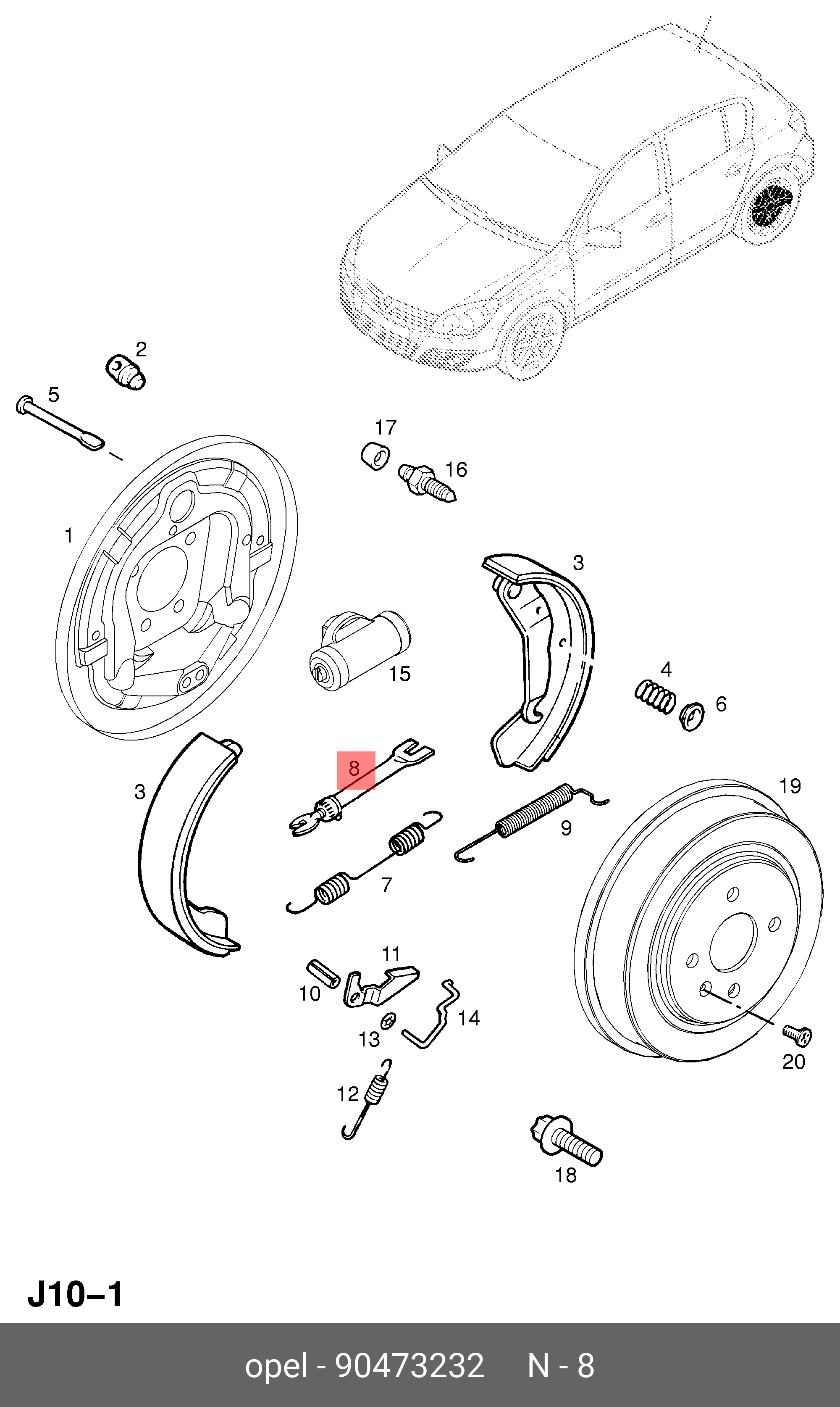 | Наименование | Регулятор OPEL Astra,Corsa,Vectra зазора колодок тормозных задних правый OE |