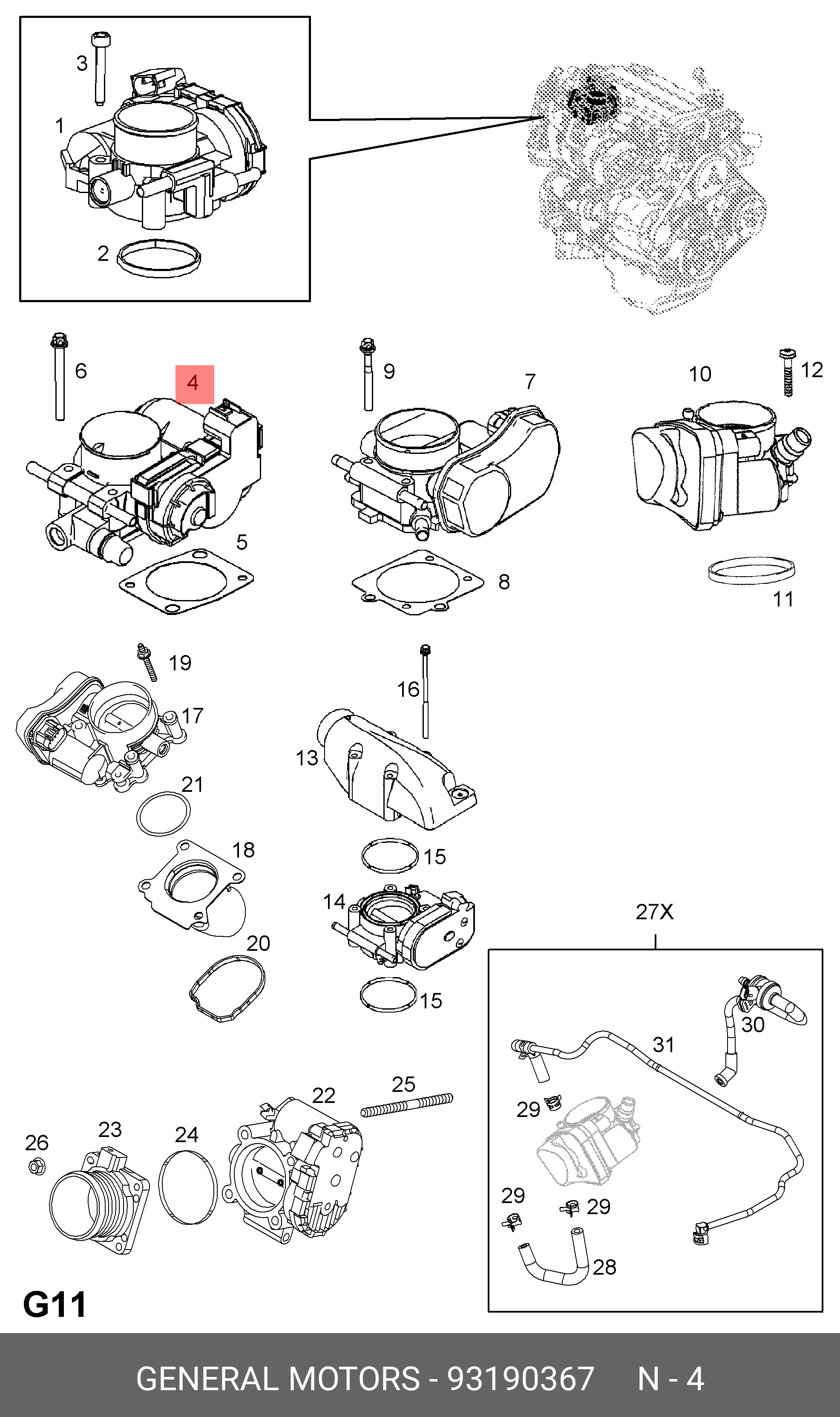 93190367 GENERAL MOTORS Блок дроссельной заслонки GENERAL MOTORS