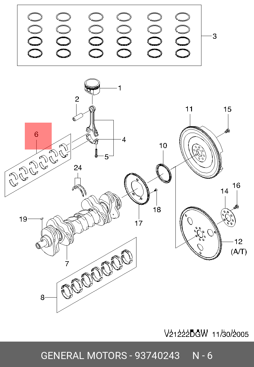93740243 GENERAL MOTORS Вкладыши шатунные YELLOW(t1.6-0.001) 93740243