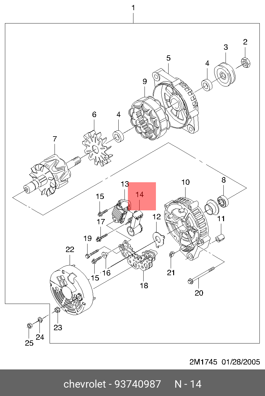 93740987 GENERAL MOTORS Щетка генератора DAEWOO Matiz OE