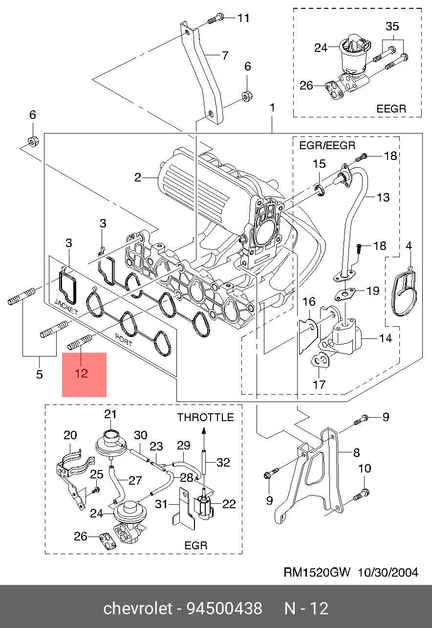 94500438 GENERAL MOTORS Болт CHEVROLET OE