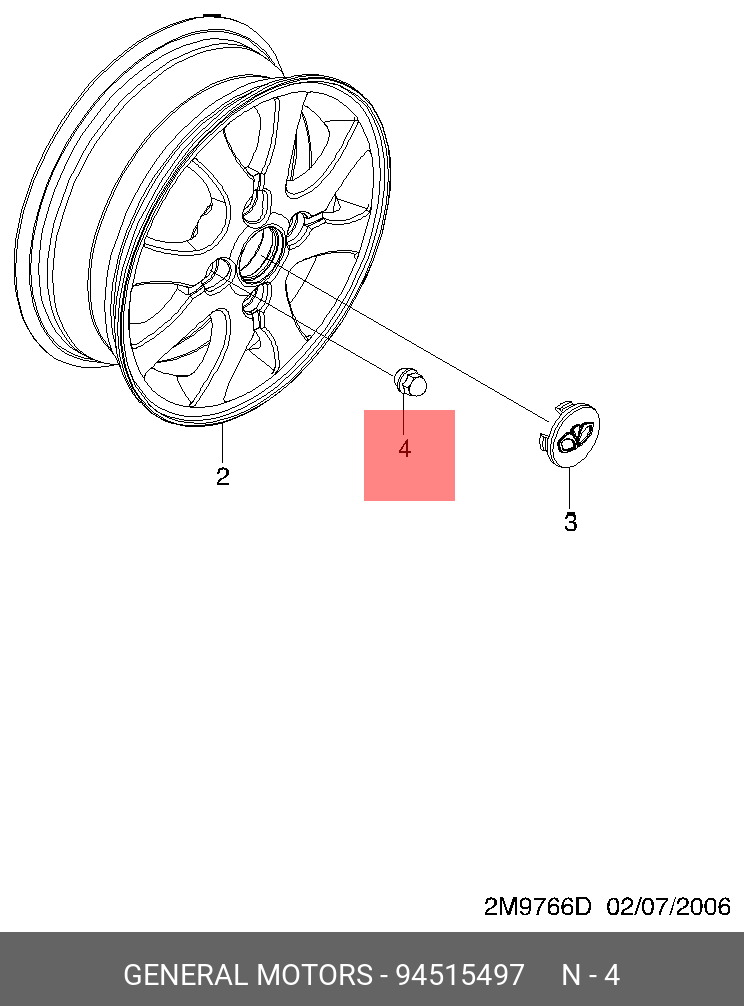 94515497 GENERAL MOTORS Гайка колеса DAEWOO Matiz CHEVROLET Spark (05-) (литой диск) OE