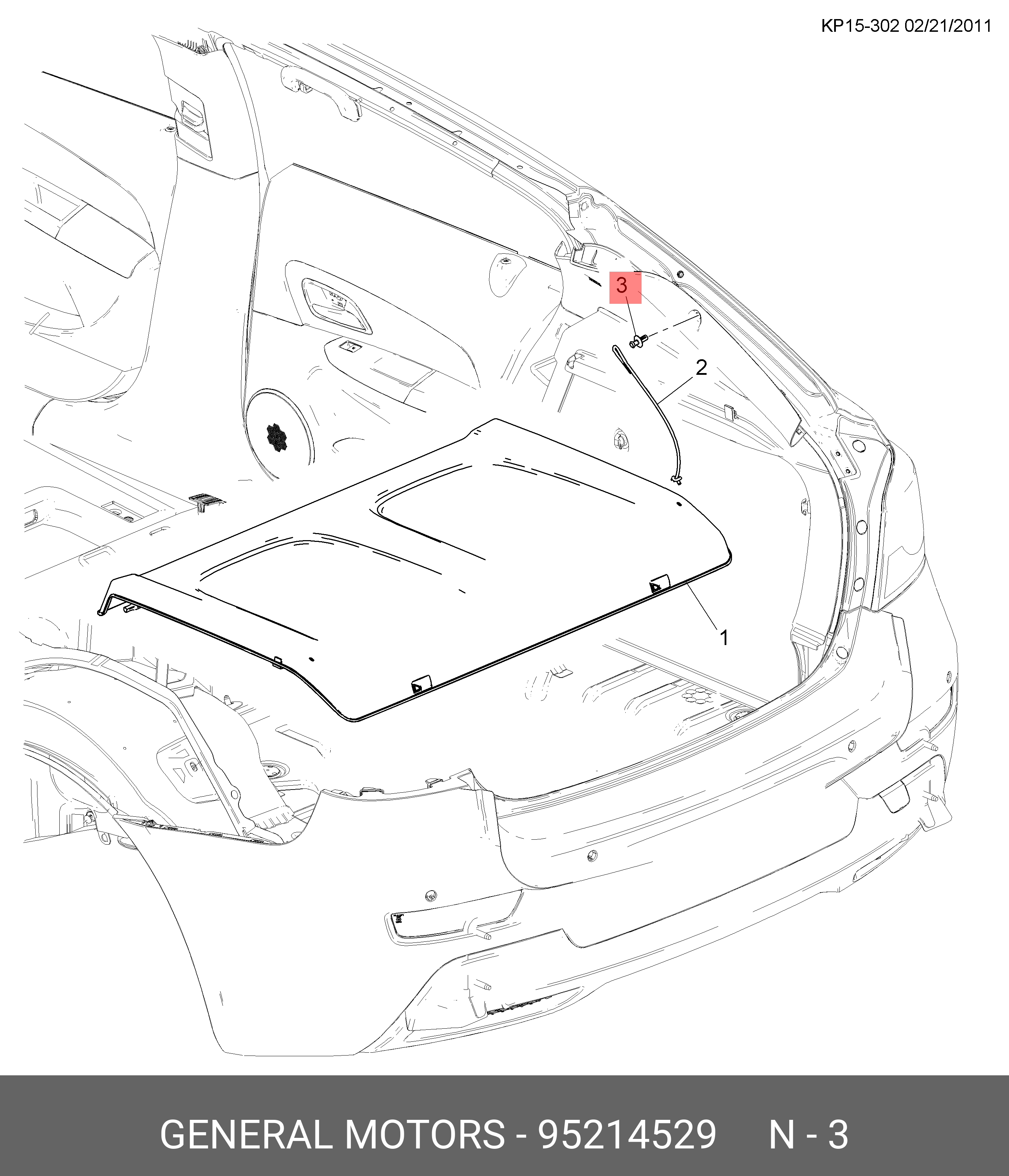 95214529 GENERAL MOTORS Фиксатор CHEVROLET Cruze (13-) полки багажника OE