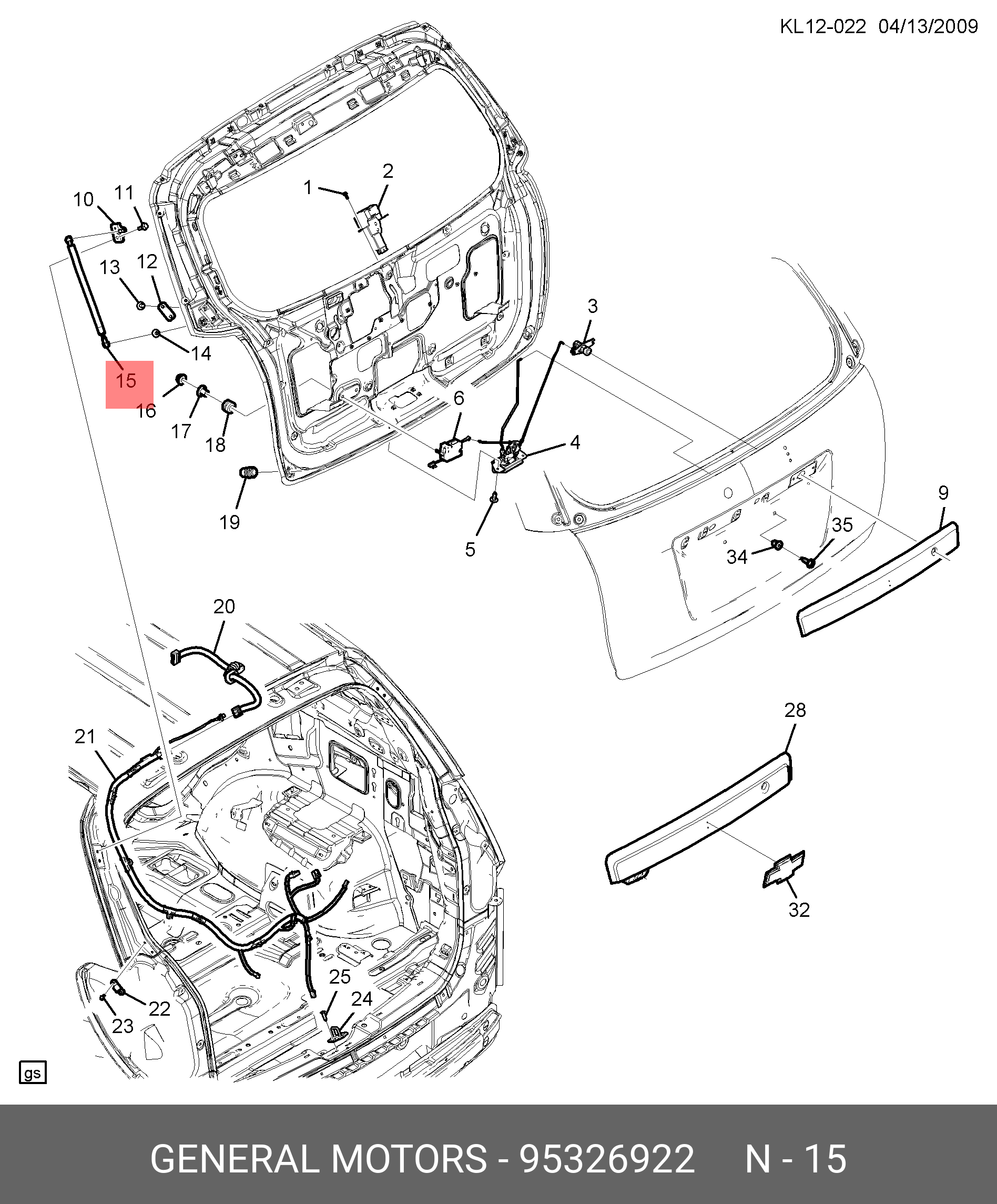 95326922 GENERAL MOTORS АМОРТИЗАЦИОННАЯ СТОЙКА ЗАДНЕЙ ОТКИДНОЙ ДВЕРИ 95326922