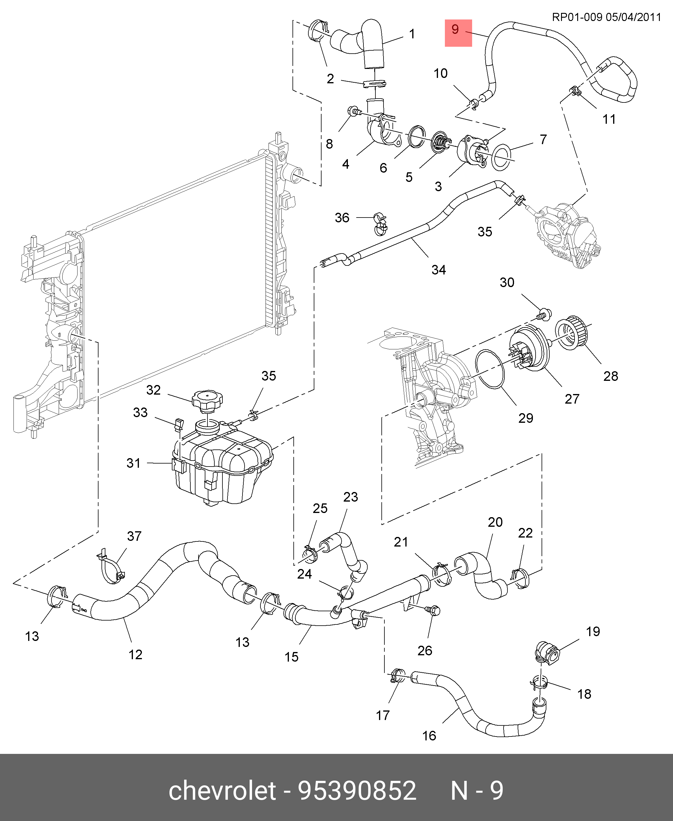 95390852 GENERAL MOTORS Патрубок CHEVROLET Cruze (09-16) системы охлаждения OE