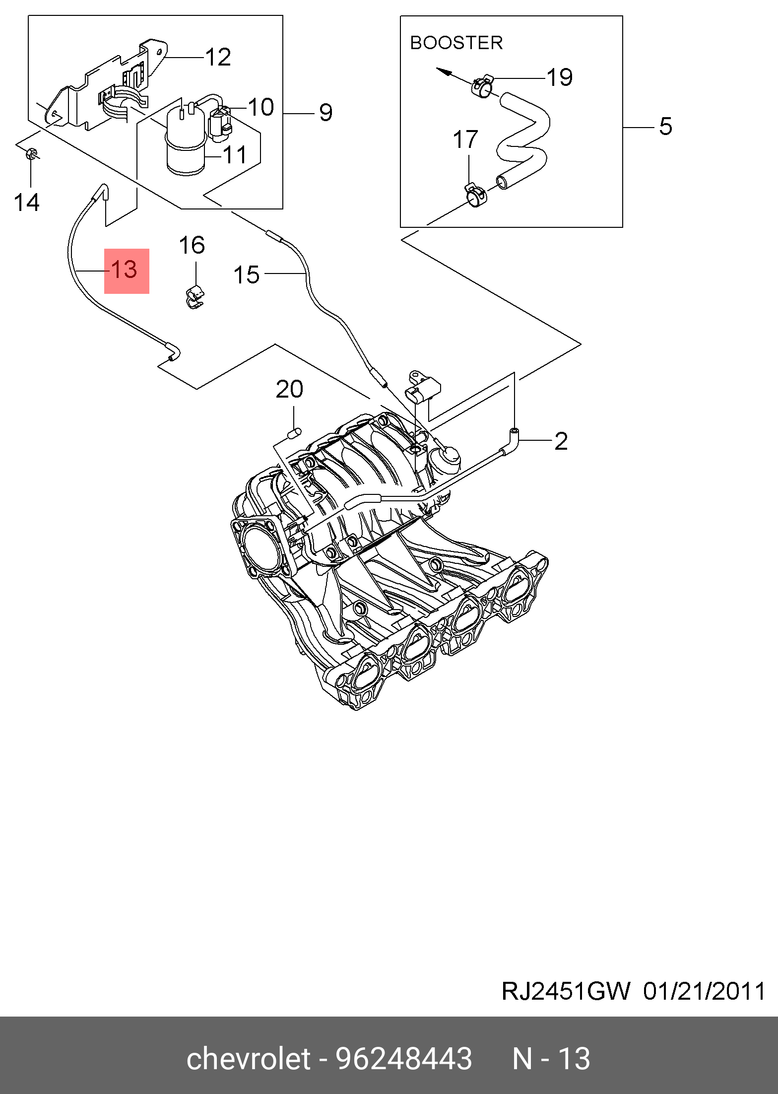 96248443 GENERAL MOTORS Шланг CHEVROLET Lacetti (03-08) насоса вакуумного OE