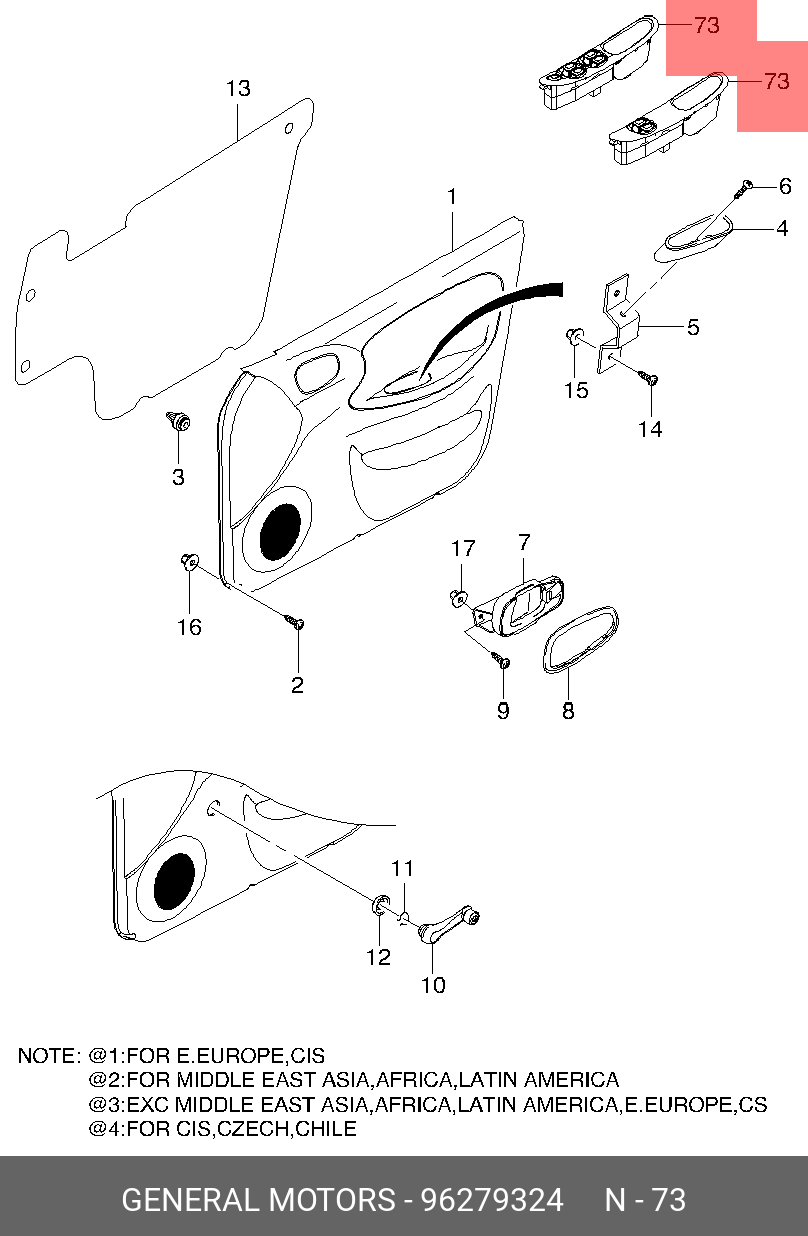 96279324 GENERAL MOTORS Выключатель электростеклоподъемника CHEVROLET Lanos OE