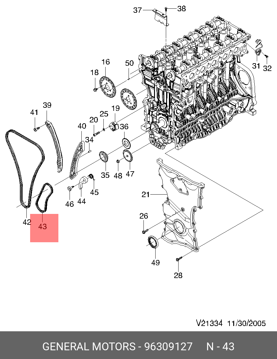 96309127 GENERAL MOTORS Цепь CHEVROLET Epica (03-06) привода насоса масляного OE