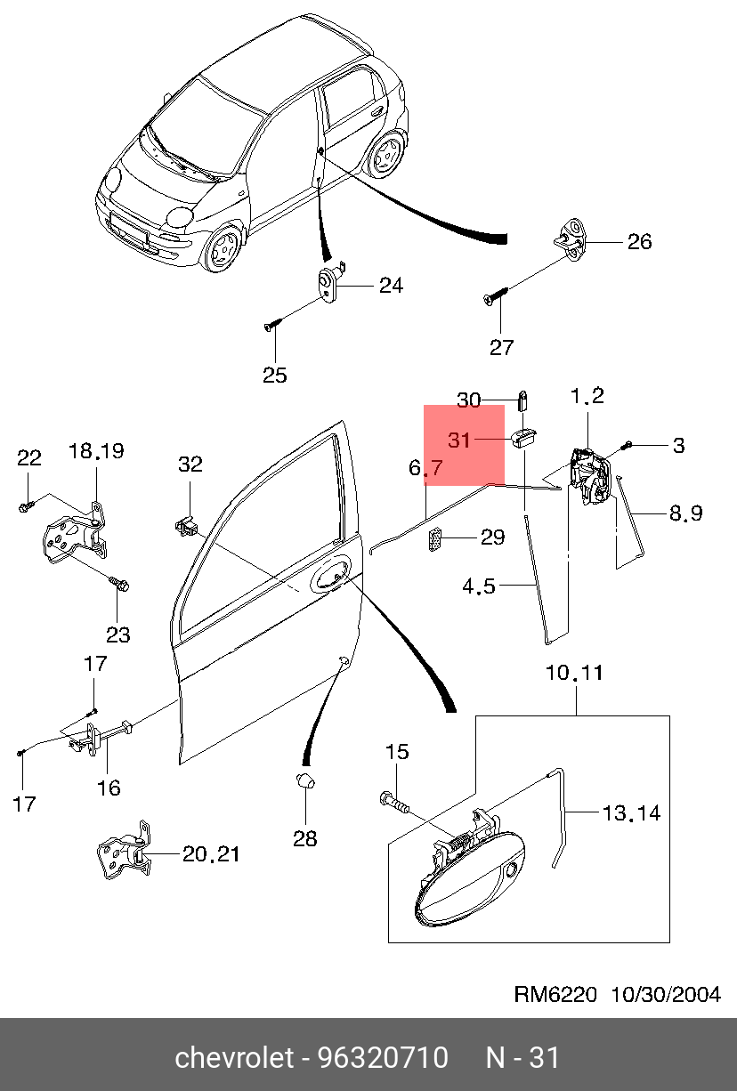 96320710 GENERAL MOTORS Втулка DAEWOO Matiz кнопки замка двери передней OE