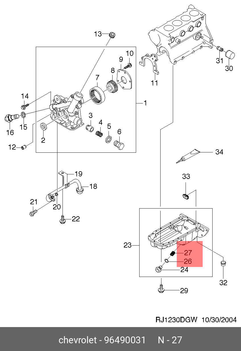 96490031 GENERAL MOTORS Пробка CHEVROLET Aveo,Lanos,Lacetti,Rezzo картера двигателя OE