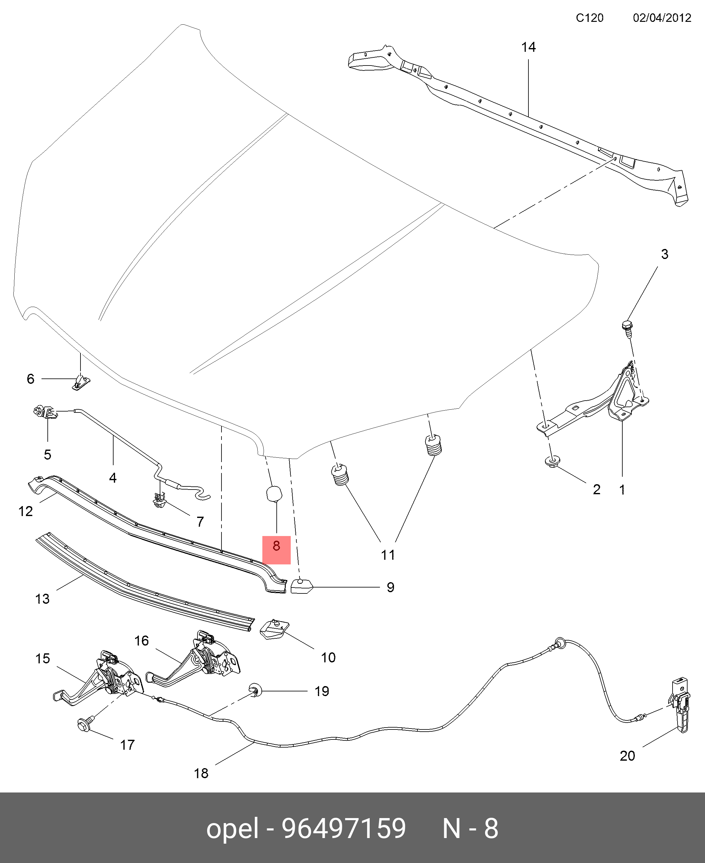 96497159 GENERAL MOTORS Отбойник CHEVROLET Cruze (10-) капота OE