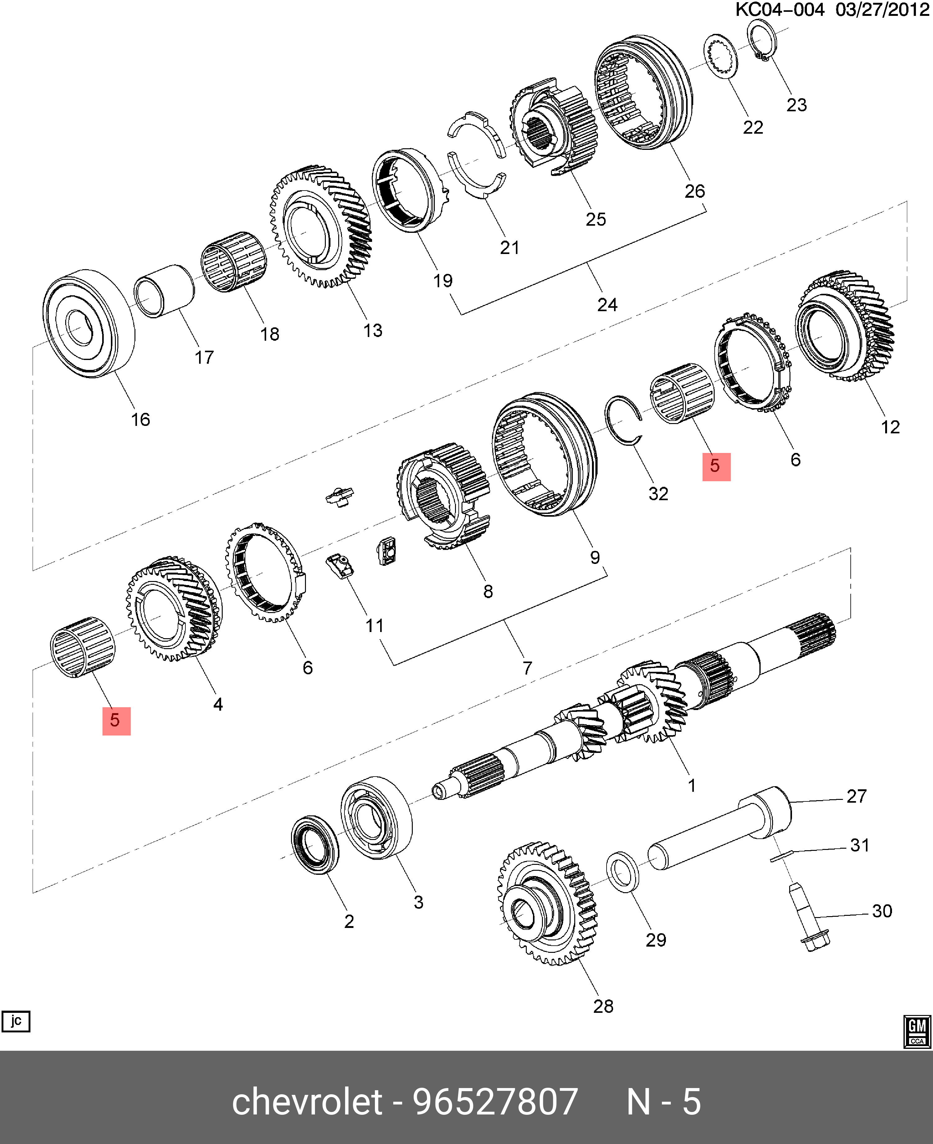 96527807 GENERAL MOTORS Подшипник КПП DAEWOO CHEVROLET Aveo (03-08),Spark (98-05) игольчатый OE