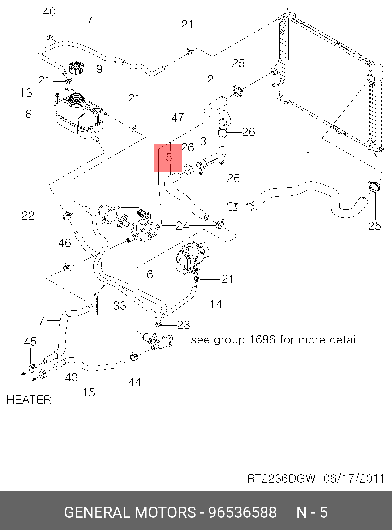 96536588 GENERAL MOTORS Шланг CHEVROLET Aveo системы охлаждения OE