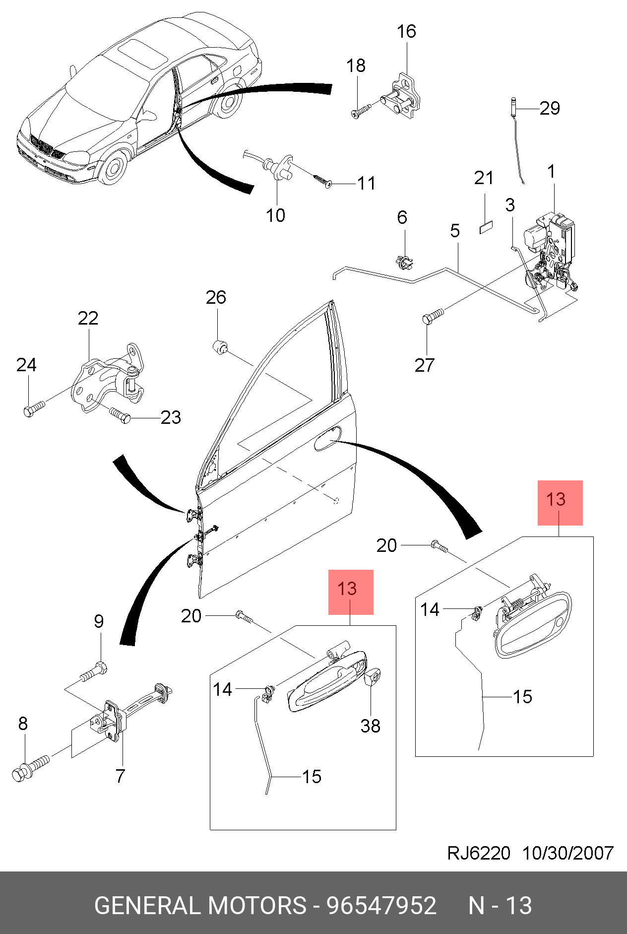 96547952 GENERAL MOTORS Ручка двери CHEVROLET LACETTI передней правой наружная 96547952