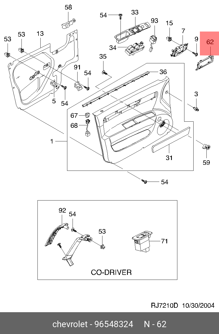 | Наименование | Накладка ручки двери CHEVROLET Lacetti передней левой внутренней OE |