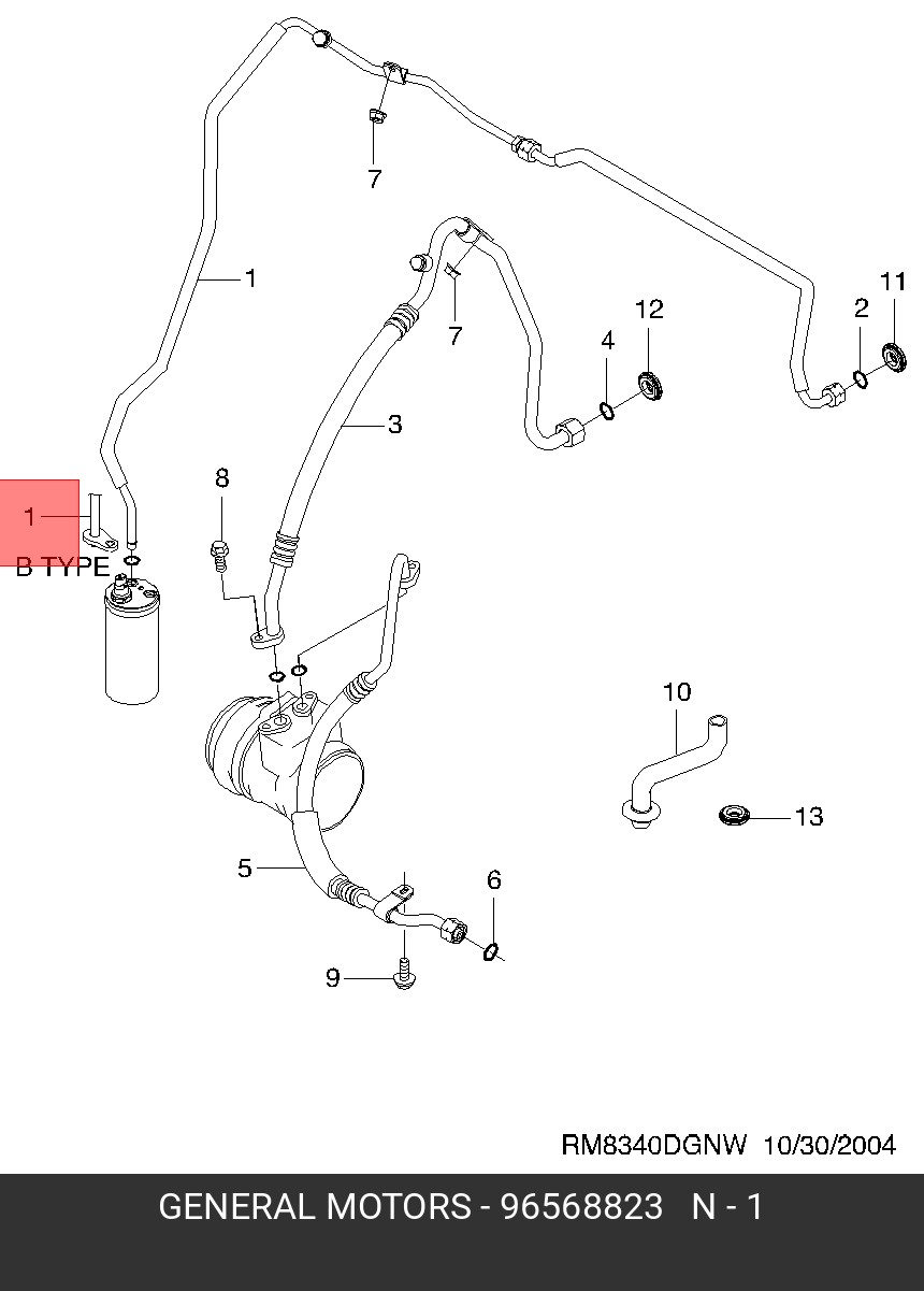 96568823 GENERAL MOTORS Трубка кондиционера DAEWOO Matiz OE
