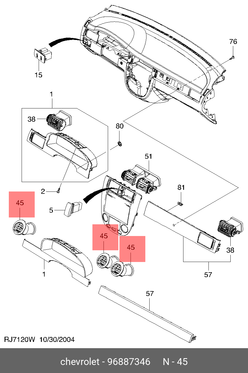 96887346 GENERAL MOTORS Сопло CHEVROLET Lacetti панели приборов OE