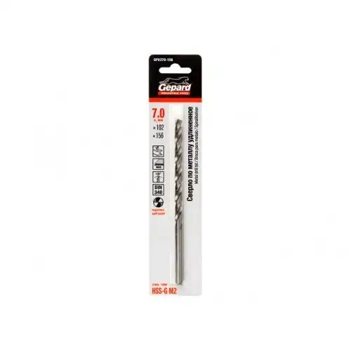 | Наименование | Сверло по металлу 7.0х156мм HSS удлиненное GEPARD |