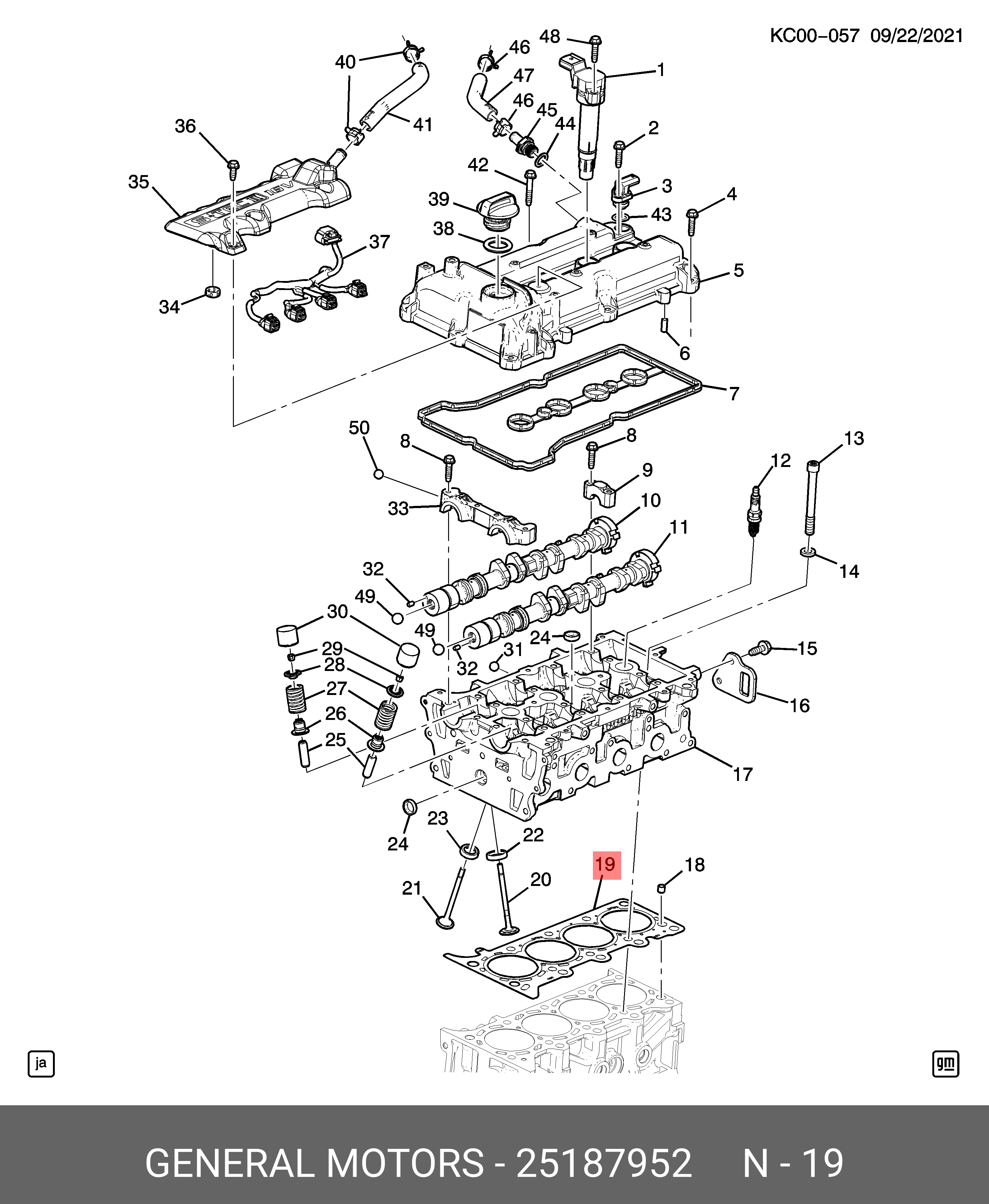 25187952 GENERAL MOTORS 25187952 Прокладка головки блока цилиндров GM 25187952 Spark 1.2 LKY ( M300 ) 20