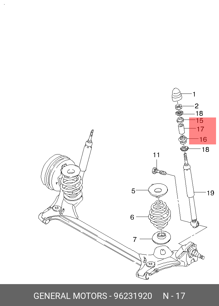 96231920 GENERAL MOTORS Втулка амортизатора DAEWOO LANOS заднего (верхняя проставка)