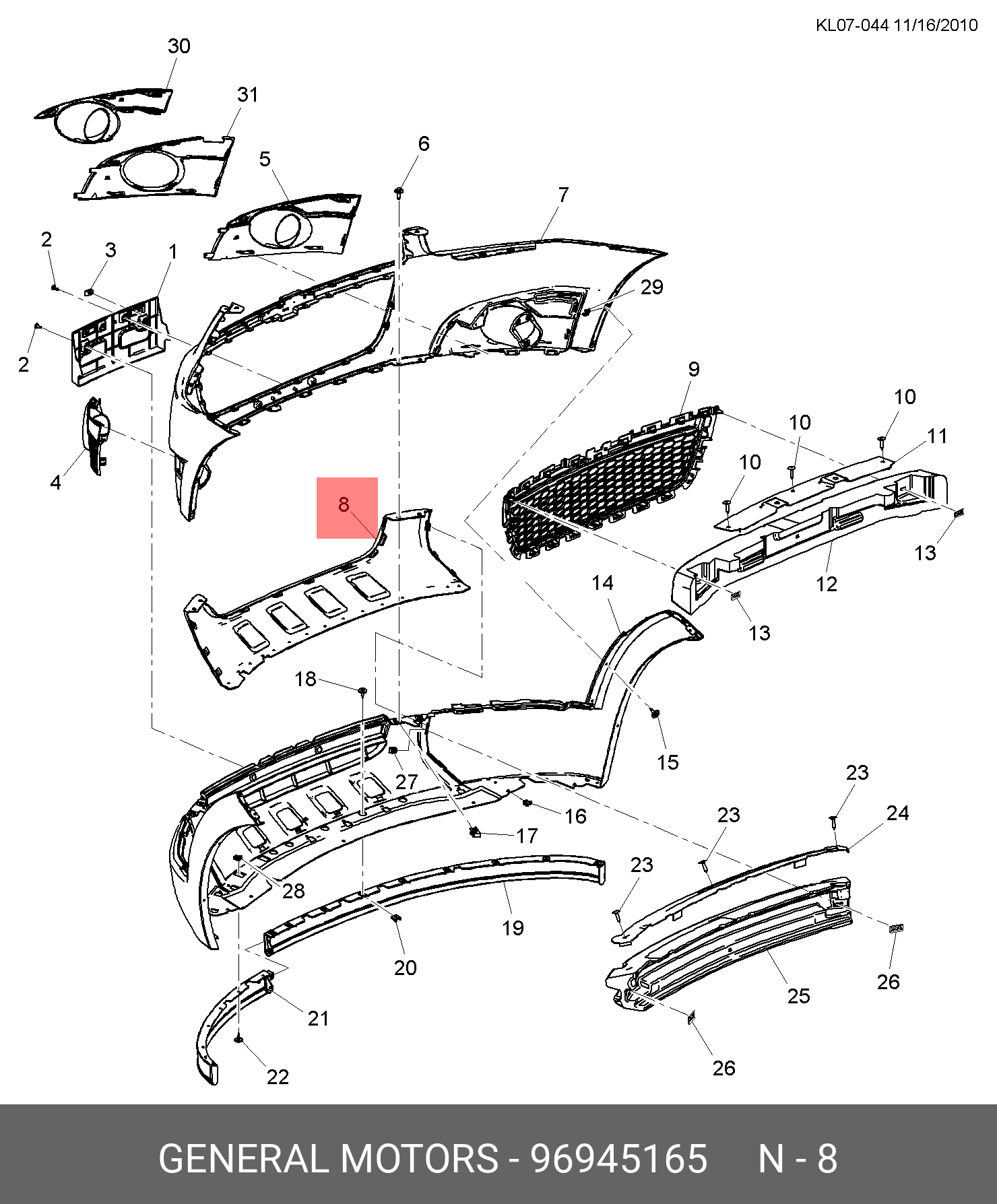 96945165 GENERAL MOTORS 96945165 НАКЛАДКА ПЕРЕДНЕГО БАМПЕРА НИЖНЯЯ / CHEVROLET CAPTIVA 11~